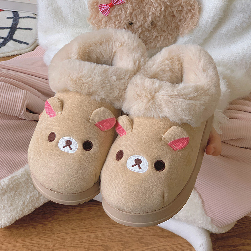 可爱轻松熊包跟棉拖鞋女冬季外穿防滑居家室内保暖毛毛鞋棉鞋假日