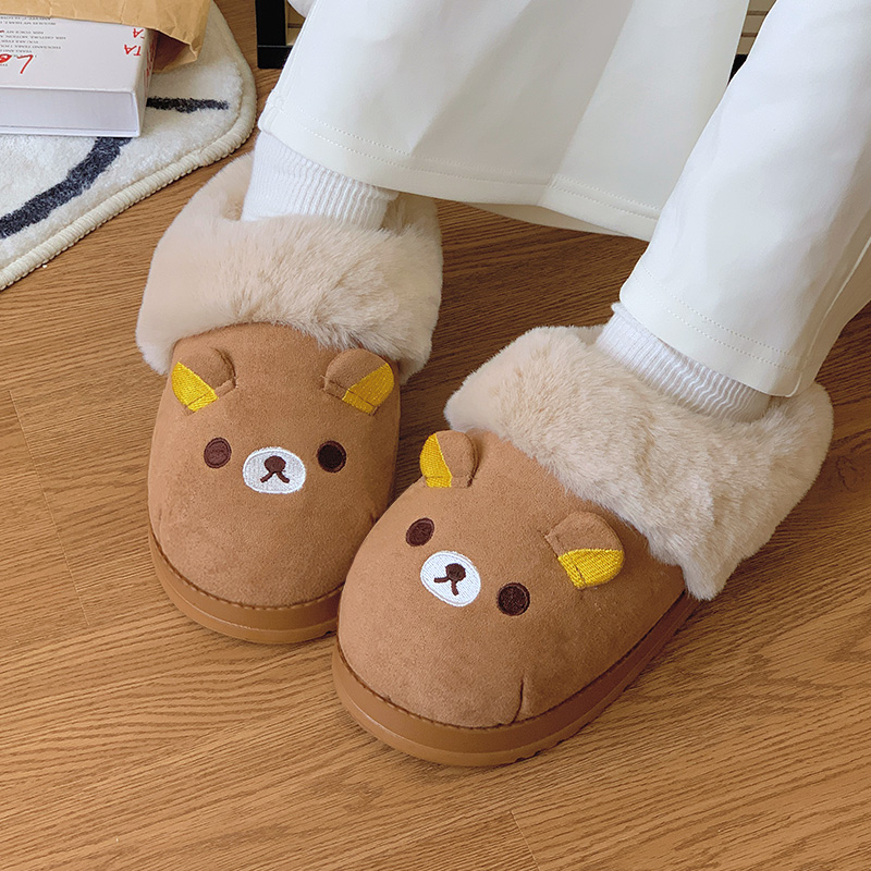 可爱轻松熊包跟棉拖鞋女冬季外穿防滑居家室内保暖毛毛鞋棉鞋假日,上海