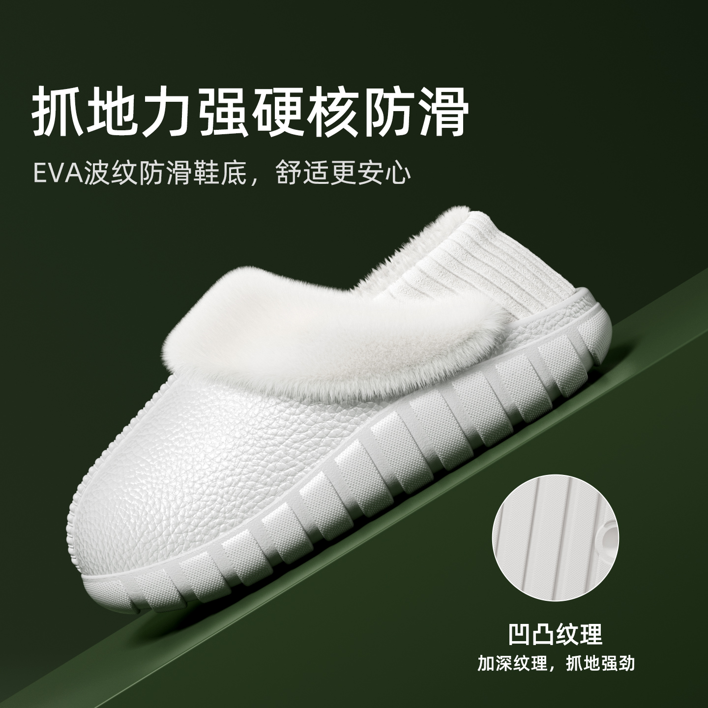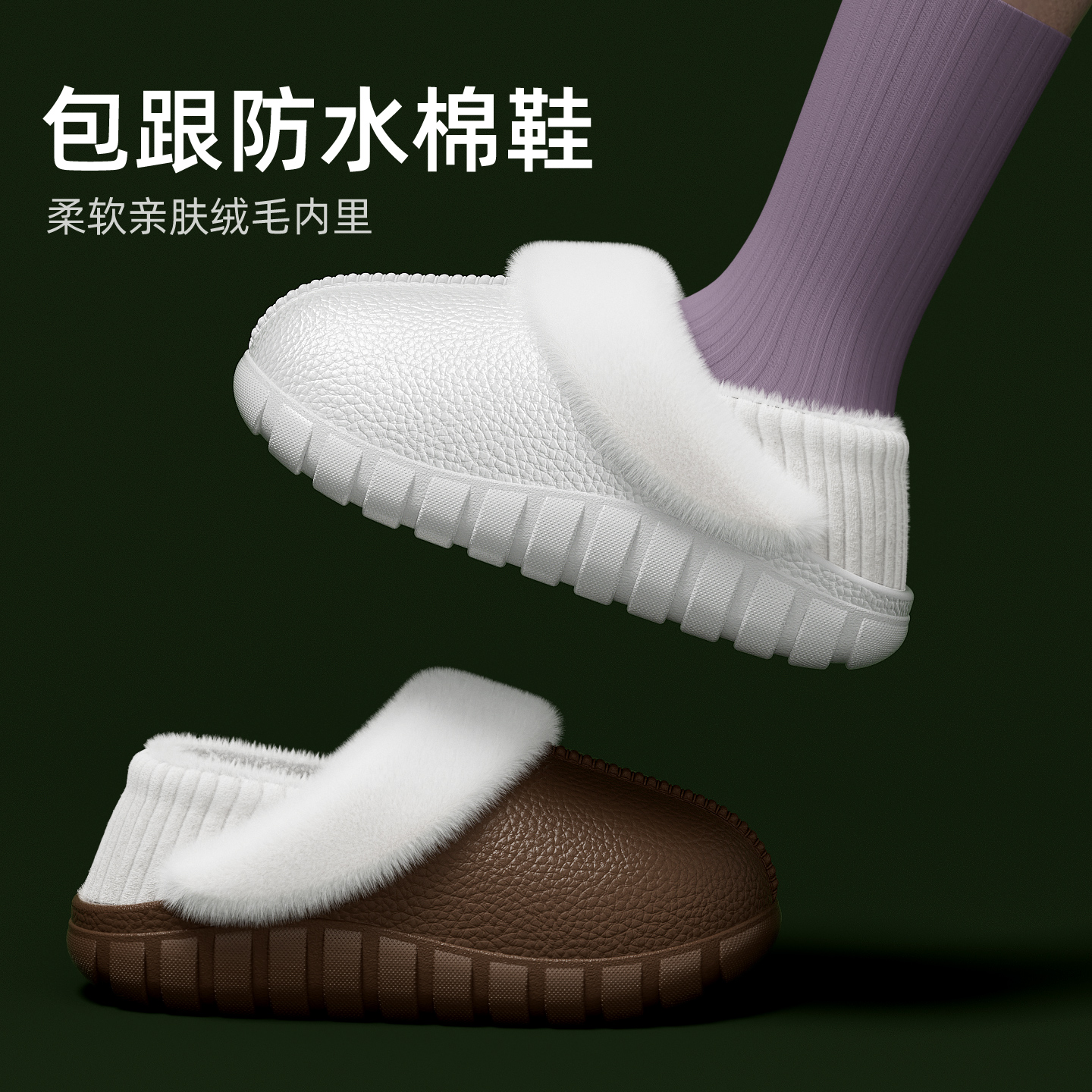包跟EVA皮纹棉拖鞋女防水毛绒秋冬室内保暖防滑家居家外穿棉鞋男,福建 福州