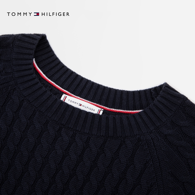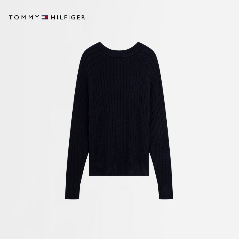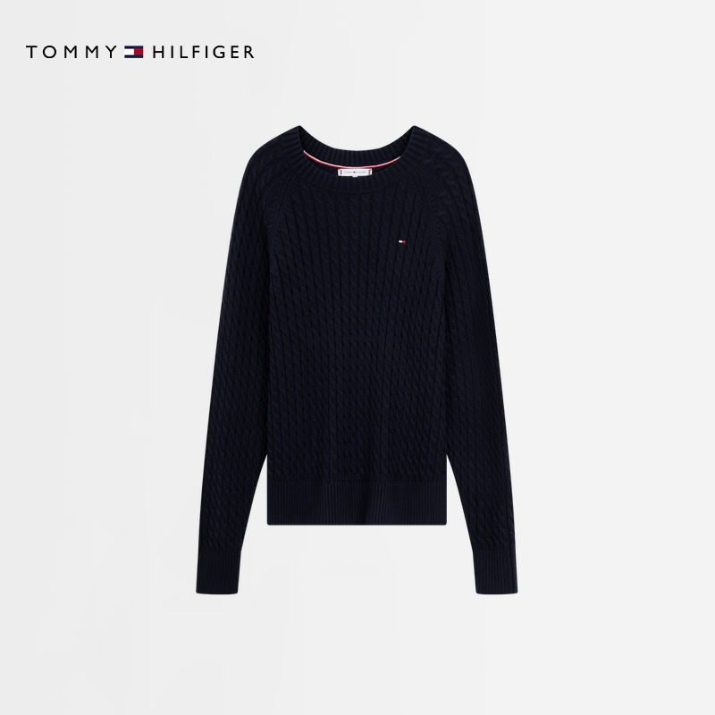 Tommy秋冬女装优雅通勤简约绣标绞花肌理纯色圆领内搭打底针织衫,上海