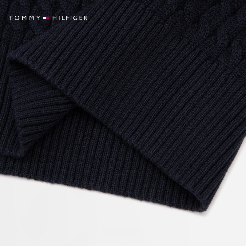 Tommy秋冬女装优雅通勤简约绣标绞花肌理纯色圆领内搭打底针织衫