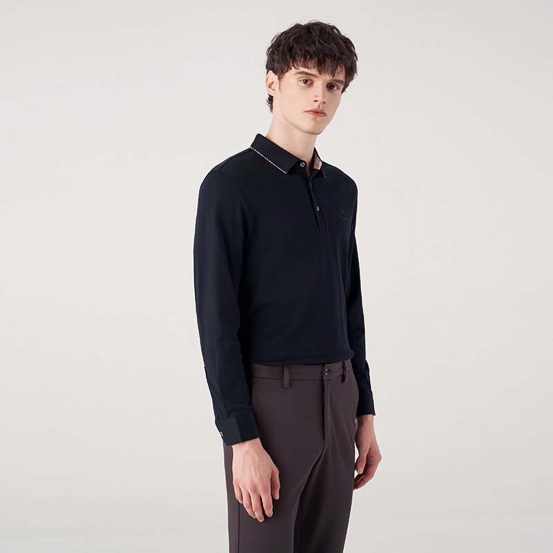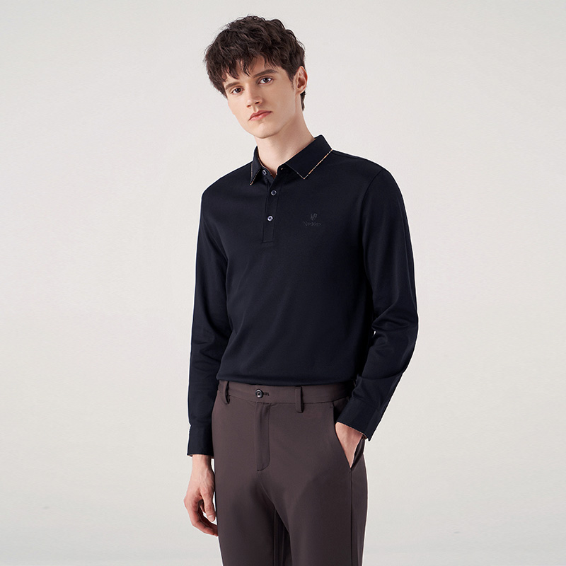 versino/梵思诺男装初秋上新男士商务休闲长袖翻领T恤polo衫