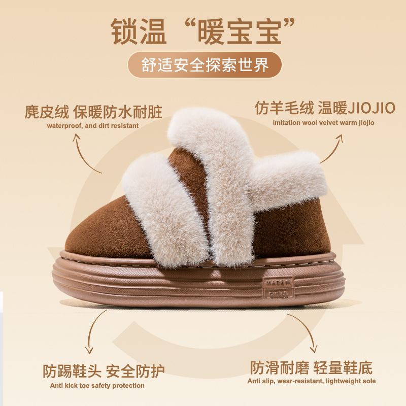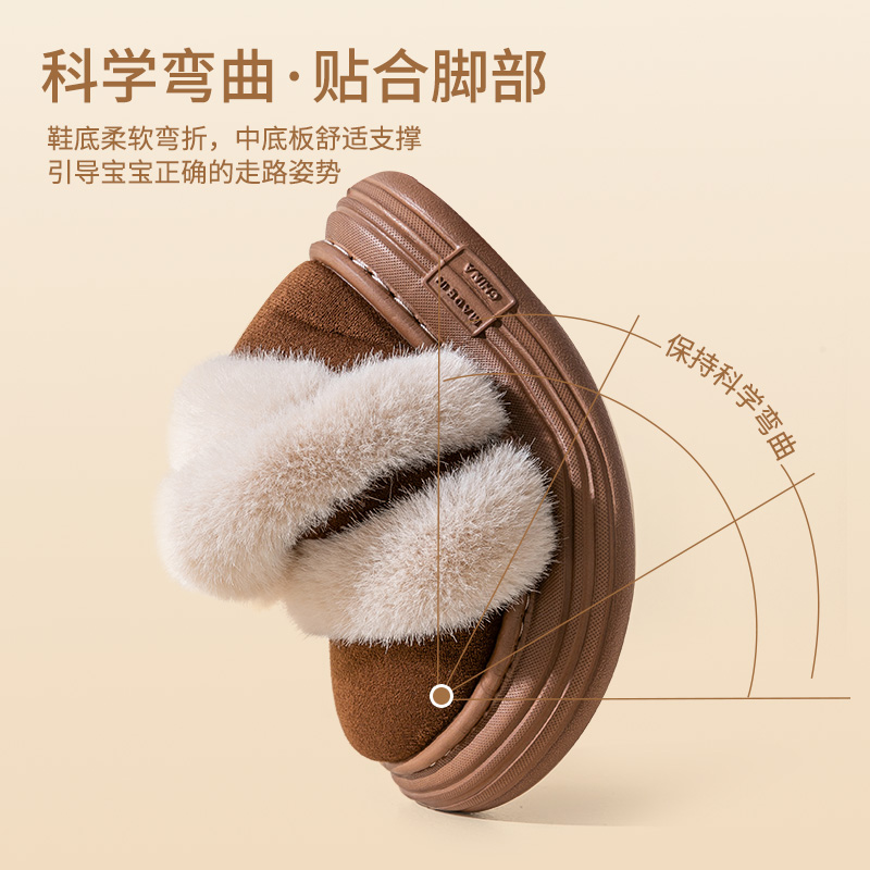 儿童棉拖鞋女童包跟秋冬季2024新款居家室内防滑保暖男孩毛毛棉鞋,浙江 金华