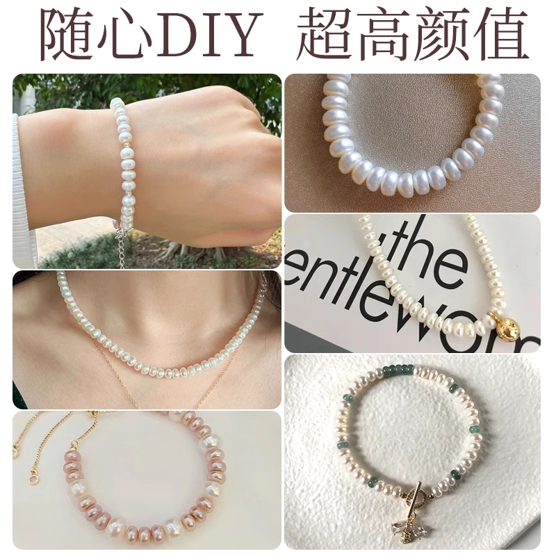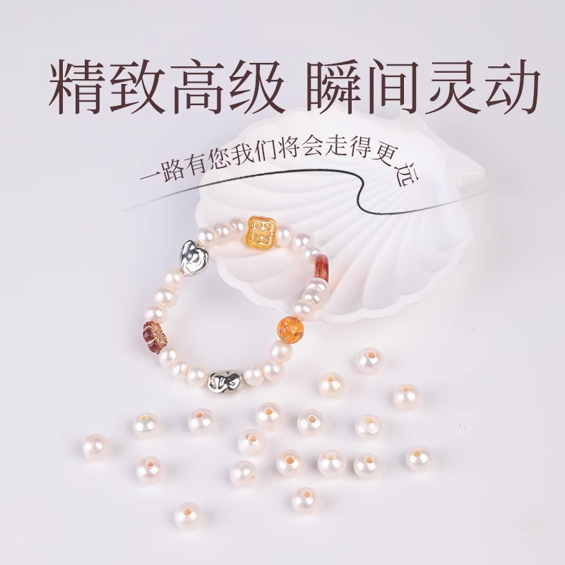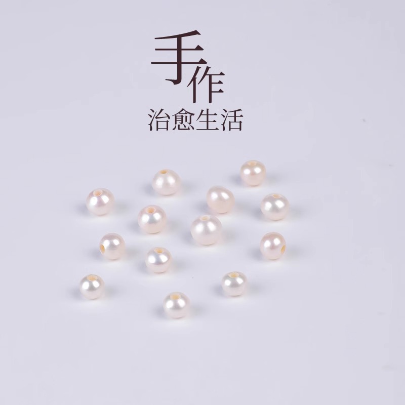 天然淡水螺纹大孔珍珠近圆珠子散珠项链吊坠手链手串diy材料配件,浙江 金华
