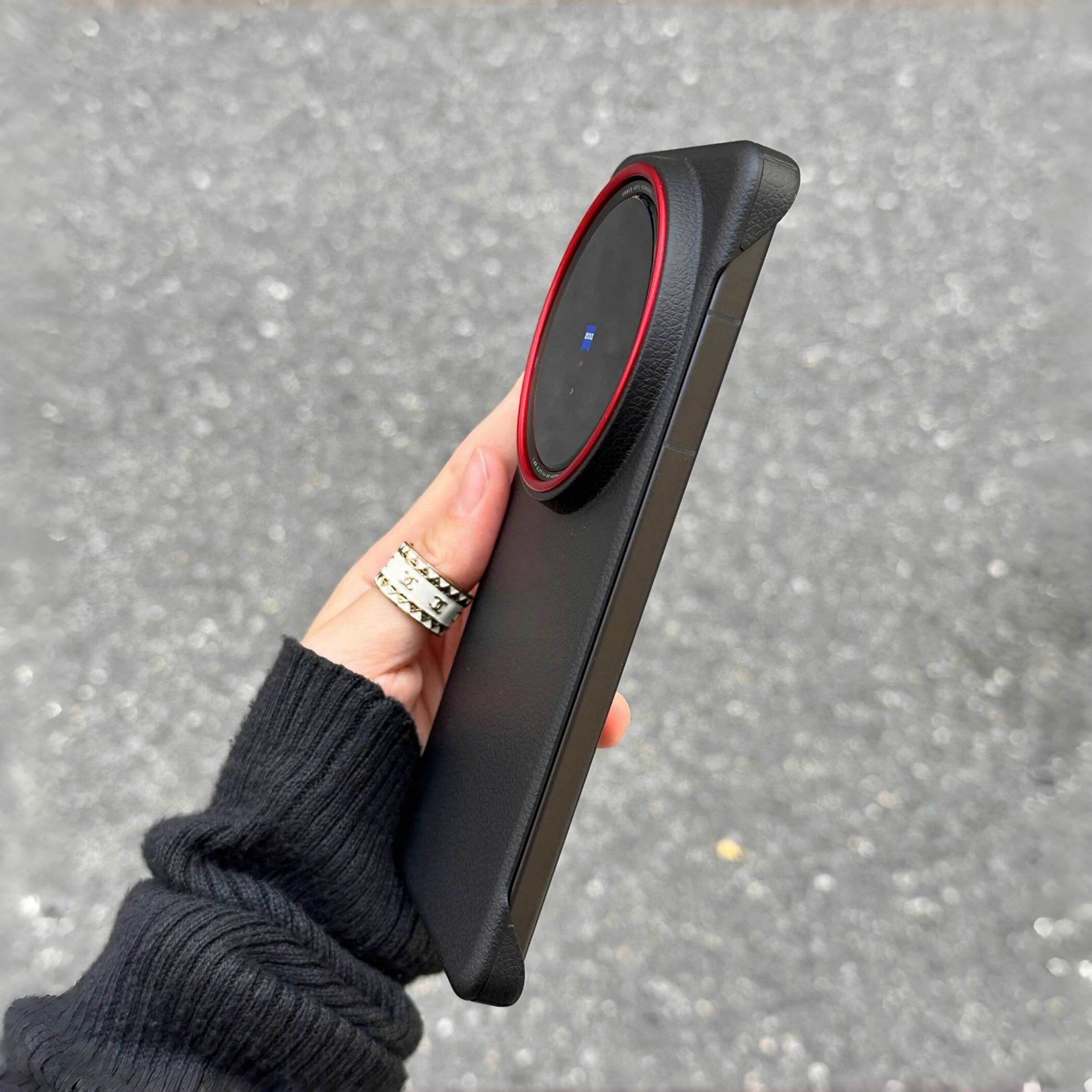 黑武士无边框荔枝纹磁吸适用小米15spro手机壳14ultra超薄肤感红米K80红色镜头一加13T男女1+ace5pro白S25U硬