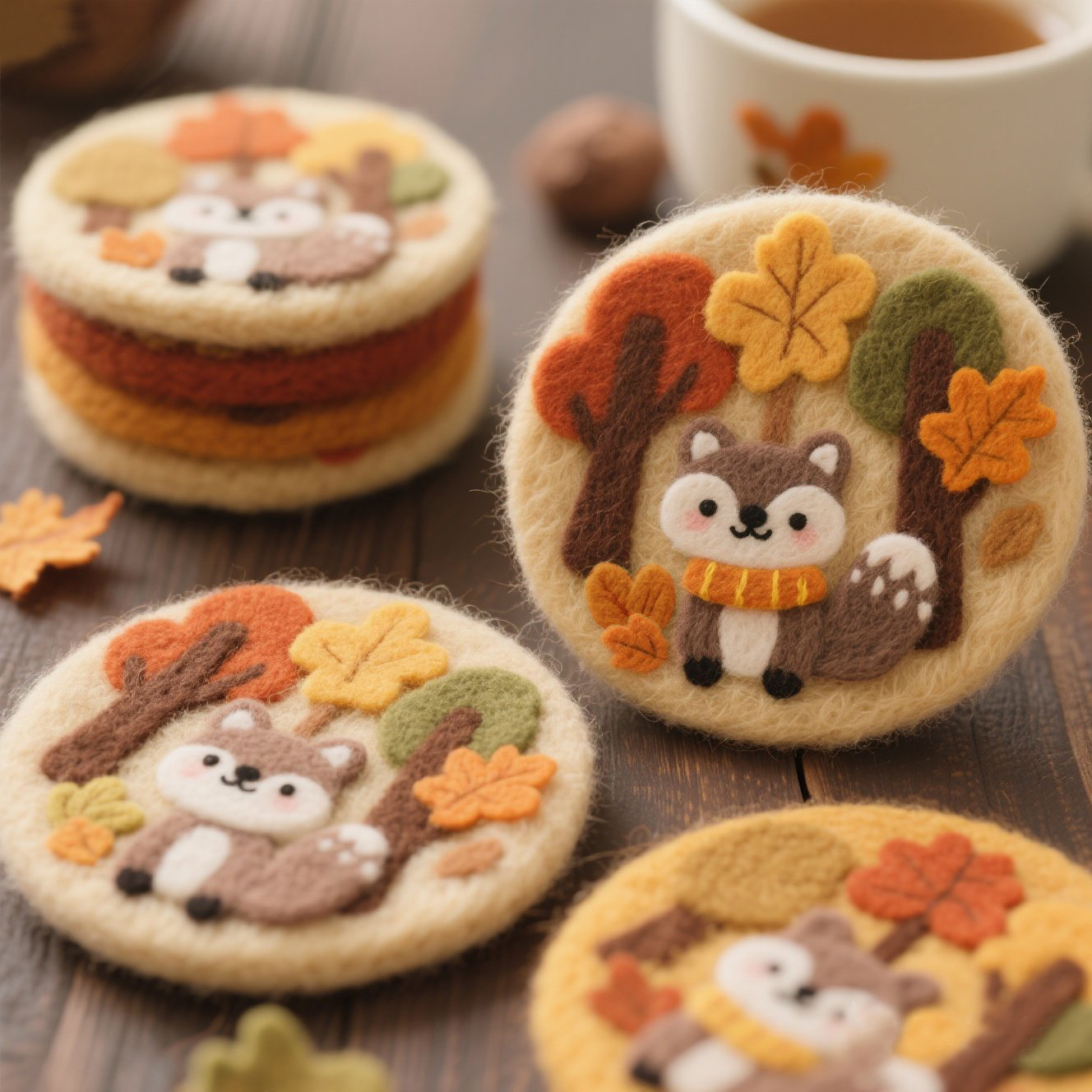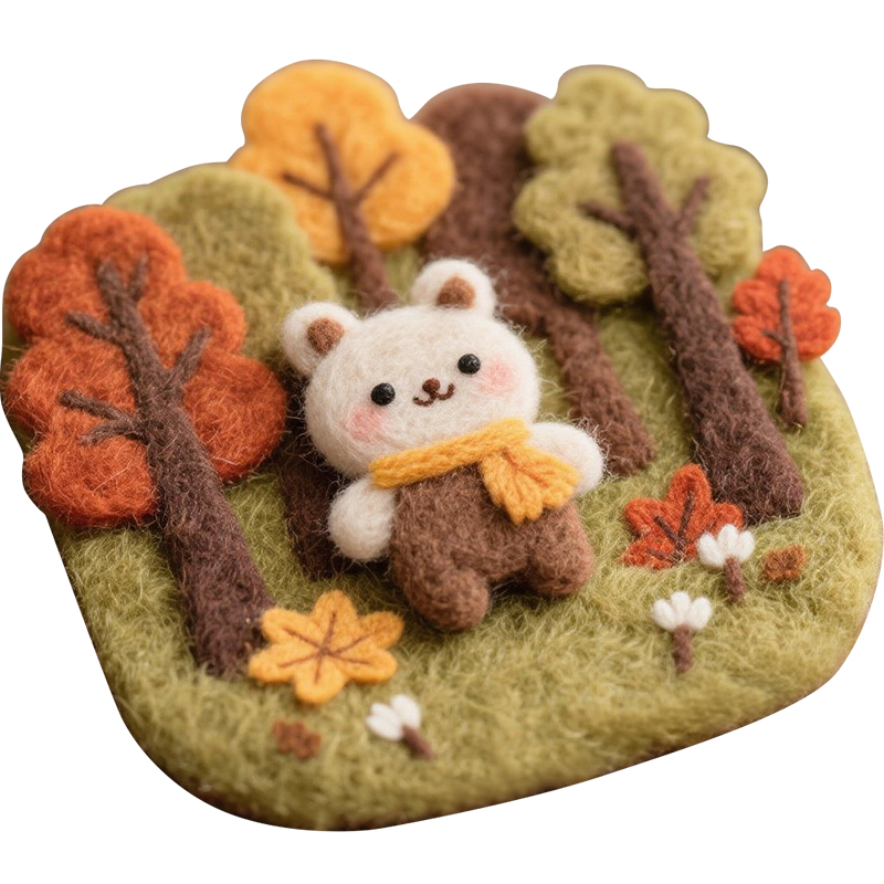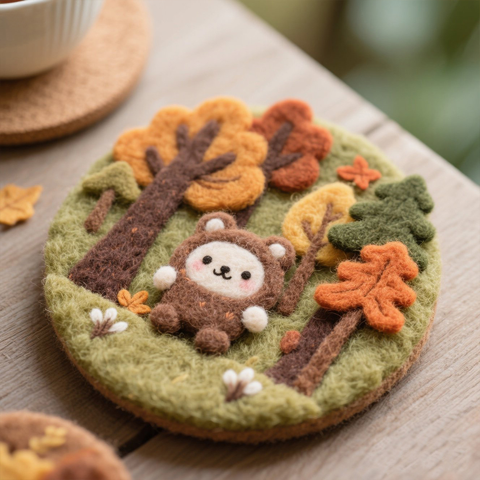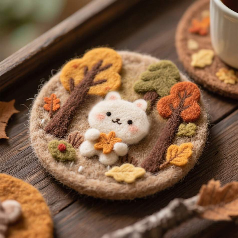 羊毛毡 戳戳乐秋季森林杯垫简单手工DIY材料包可爱礼物活动送工具