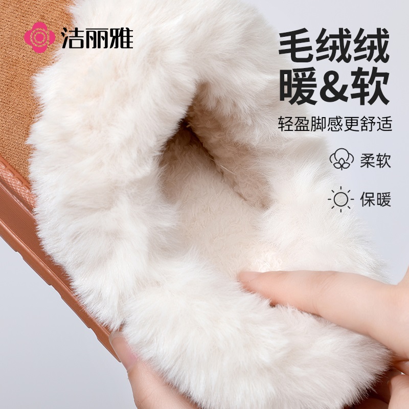洁丽雅棉拖鞋女冬季2024新款居家包跟毛绒保暖月子鞋厚底防滑棉鞋
