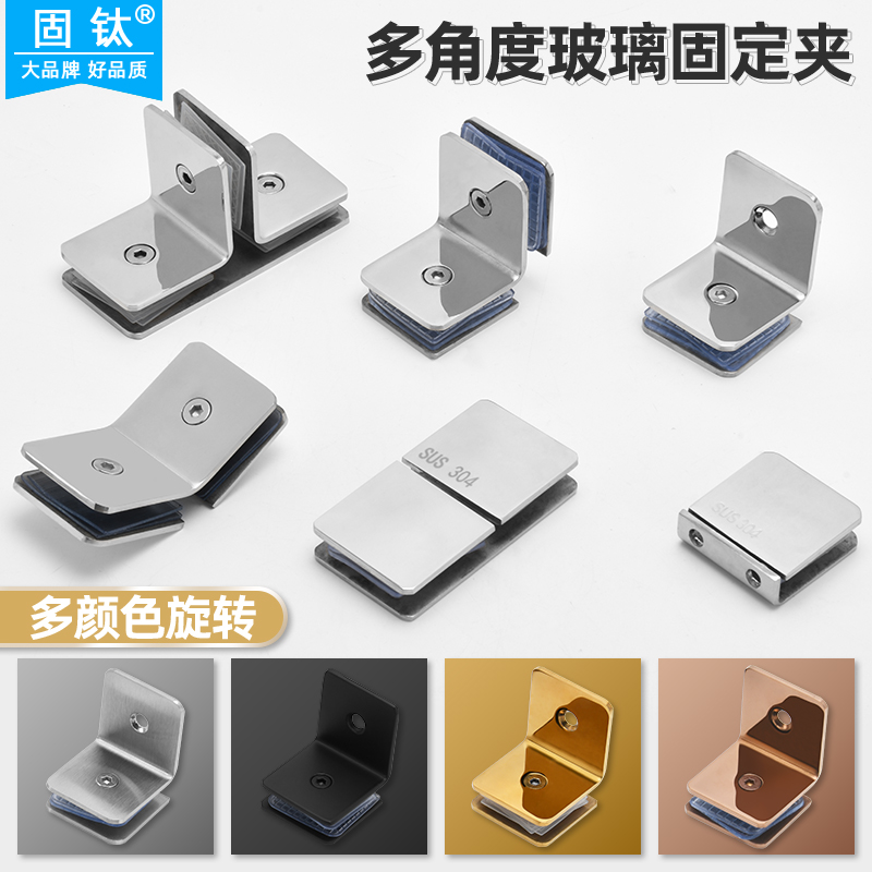 固钛304不锈钢玻璃门固定夹淋浴房无框钢化玻璃直角隔断角码配件