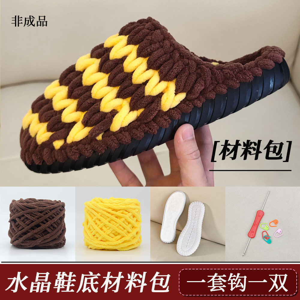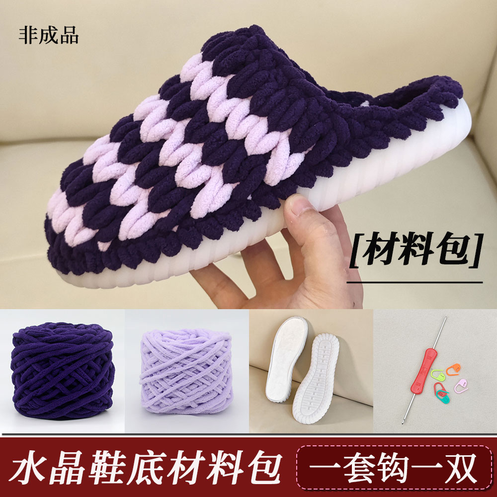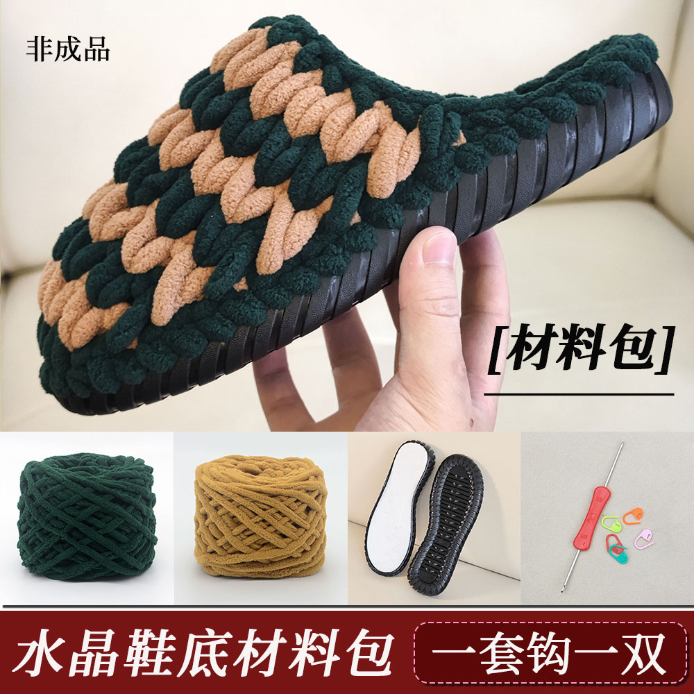 手工拖鞋材料包冰条线水晶鞋底套装钩拖鞋材料,湖南 邵阳