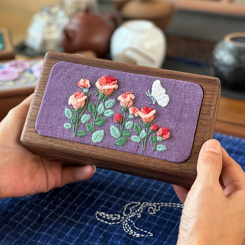 指间鲁绣非遗手工刺绣首饰盒diy材料包结婚礼物布艺自绣品送闺蜜,山东 青岛