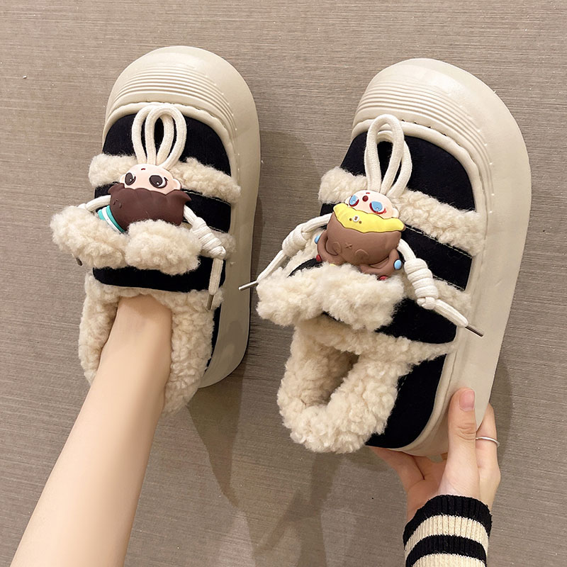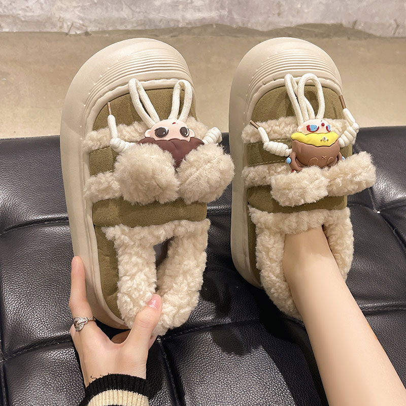 加绒棉拖鞋女冬季外穿可爱卡通厚底毛毛保暖防滑室内居家包跟棉鞋