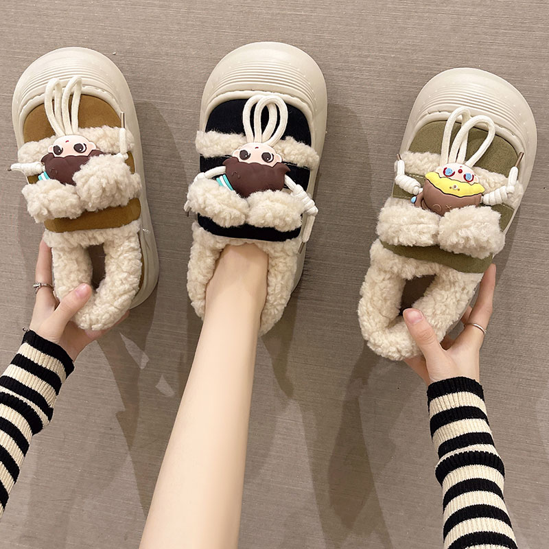 加绒棉拖鞋女冬季外穿可爱卡通厚底毛毛保暖防滑室内居家包跟棉鞋,浙江 宁波