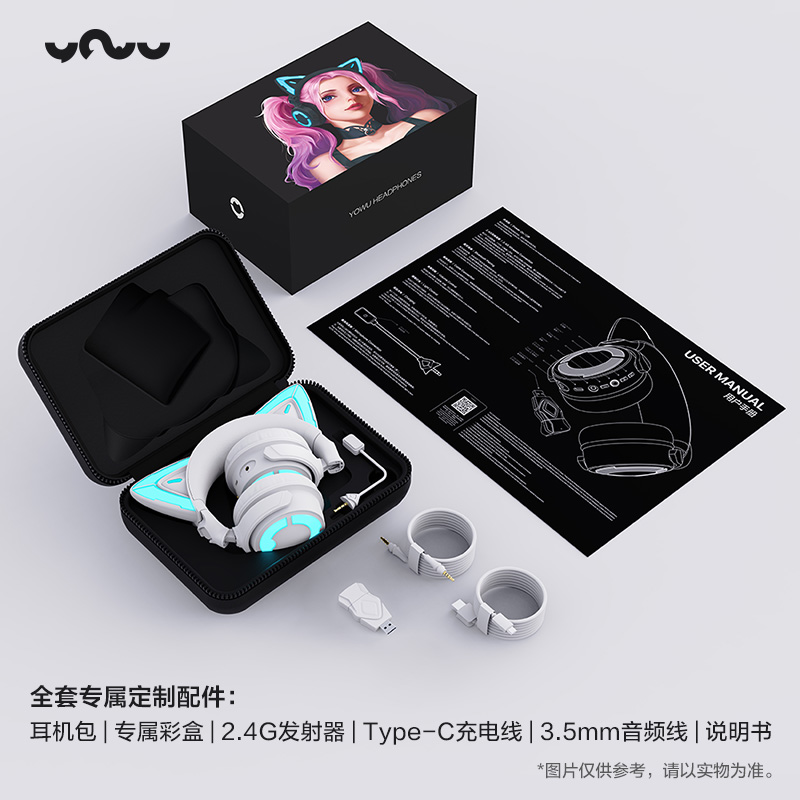妖舞猫耳耳机4GS蓝牙2.4无线女生电脑发光专用游戏电竞头戴式耳麦