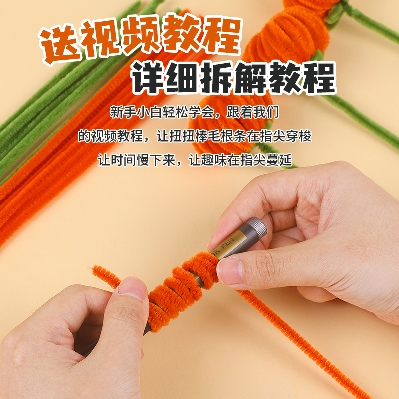柿柿如意柿子扭扭棒花束彩毛根加密材料包手工diy制作特密扭扭花,浙江 金华