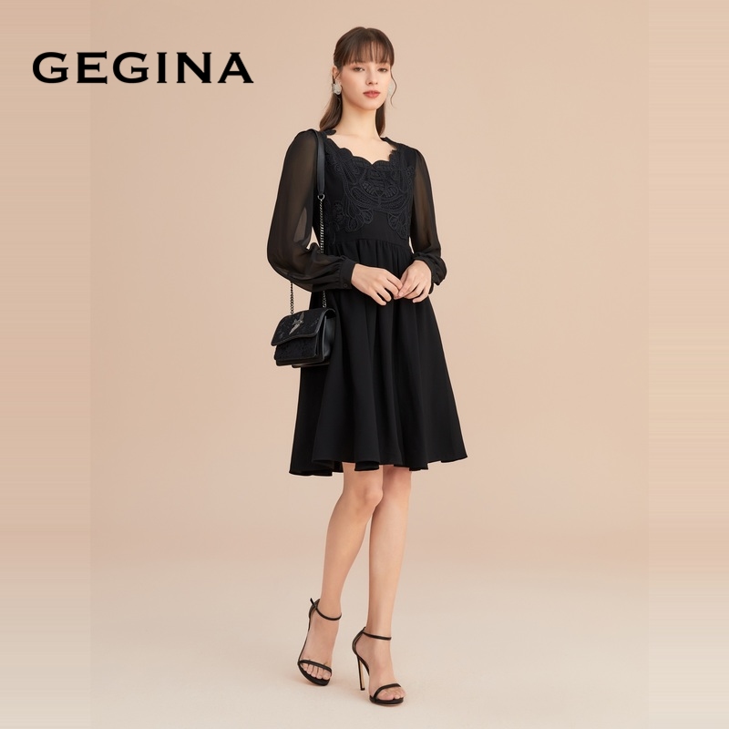GEGINA吉吉娜女装年新款A字连衣裙蕾丝点缀中长款裙子女商场同款,广东 深圳