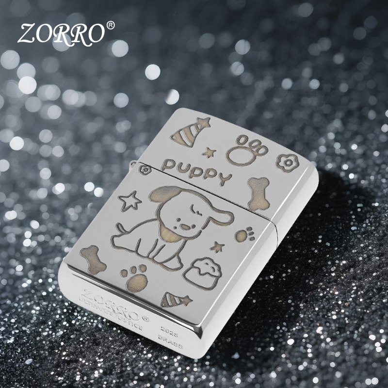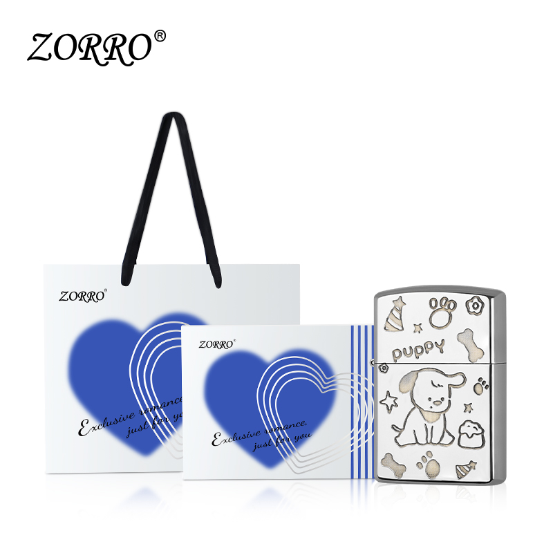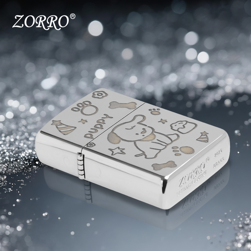 ZORRO佐罗官方旗舰店正品煤油打火机防风白镍小狗原铜送男友礼物