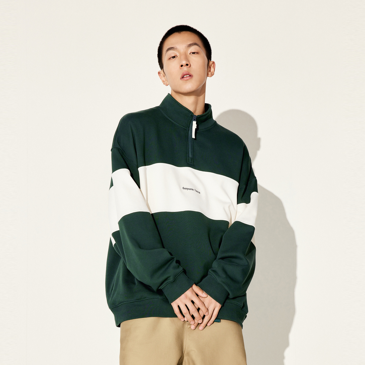 【商场同款】太平鸟男装 潮流休闲半高领拉链卫衣男B2CRD3201,浙江 宁波