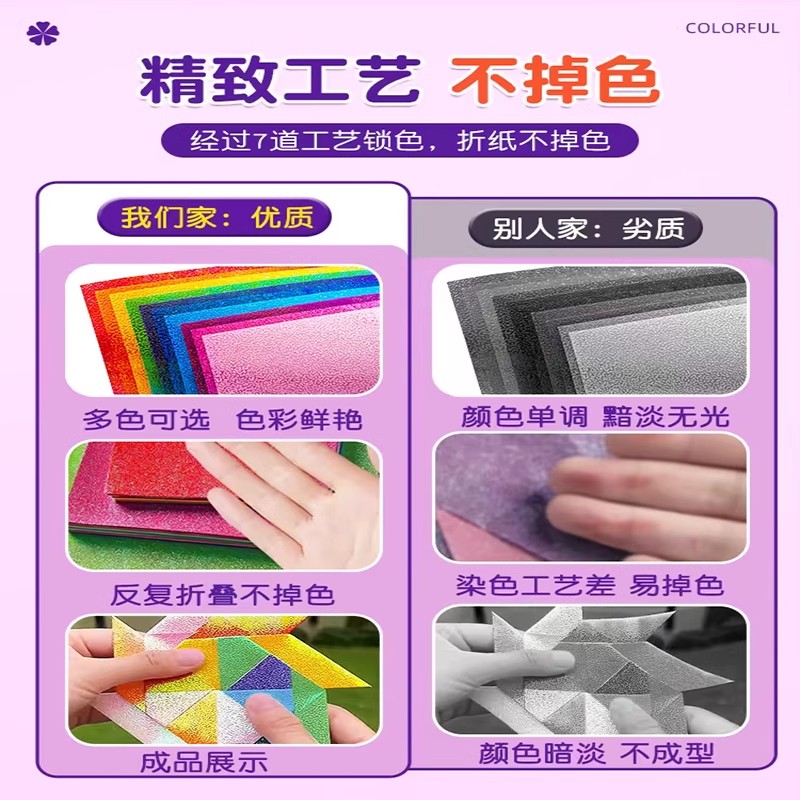珠光折纸专用纸彩色闪光正方形手工纸儿童雪梨珠光彩纸剪纸镭射纸亮光单面打印手工diy材料幼儿园千纸鹤批发,浙江 金华