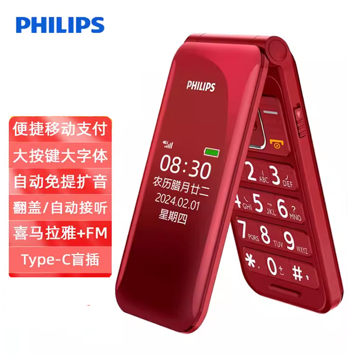 Philips/飞利浦 E6615翻盖手机老年机4G+全网通中老人机联通电信