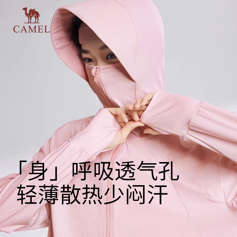 Camel骆驼女装原纱防晒衣户外穿搭皮肤衣外套冰感透气高倍防晒服,广东 广州