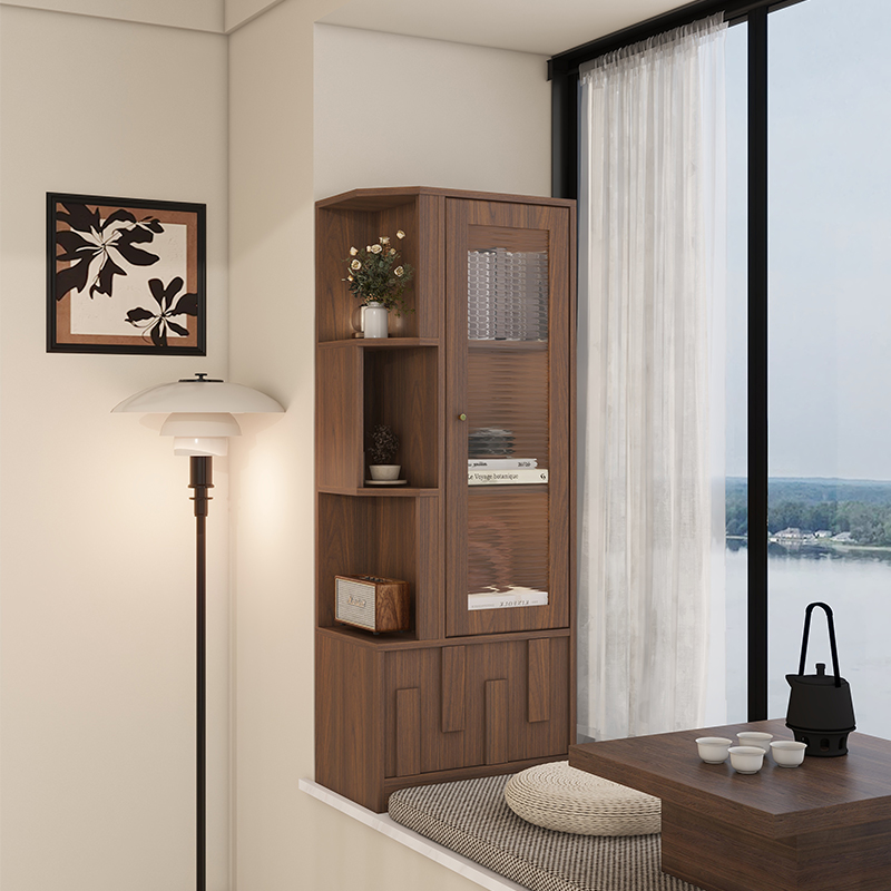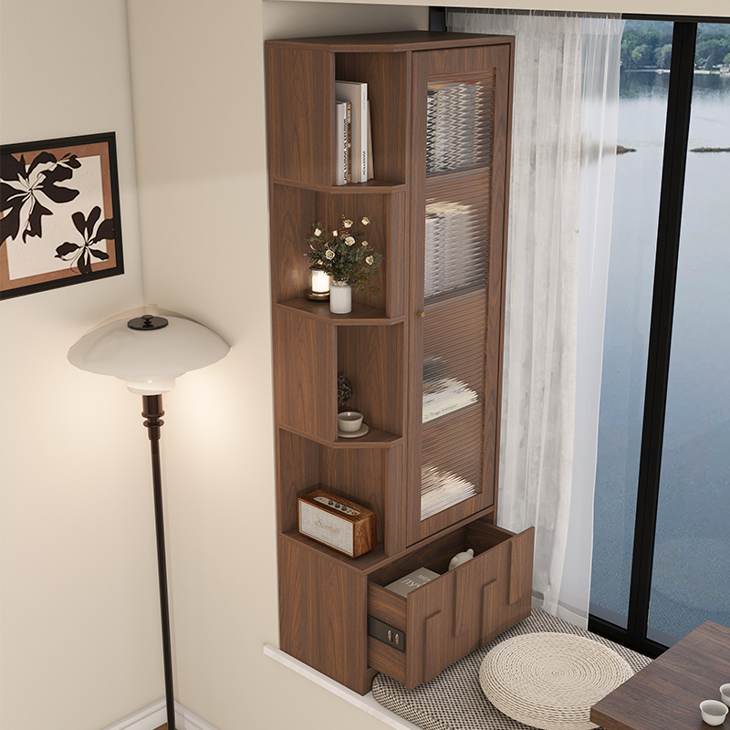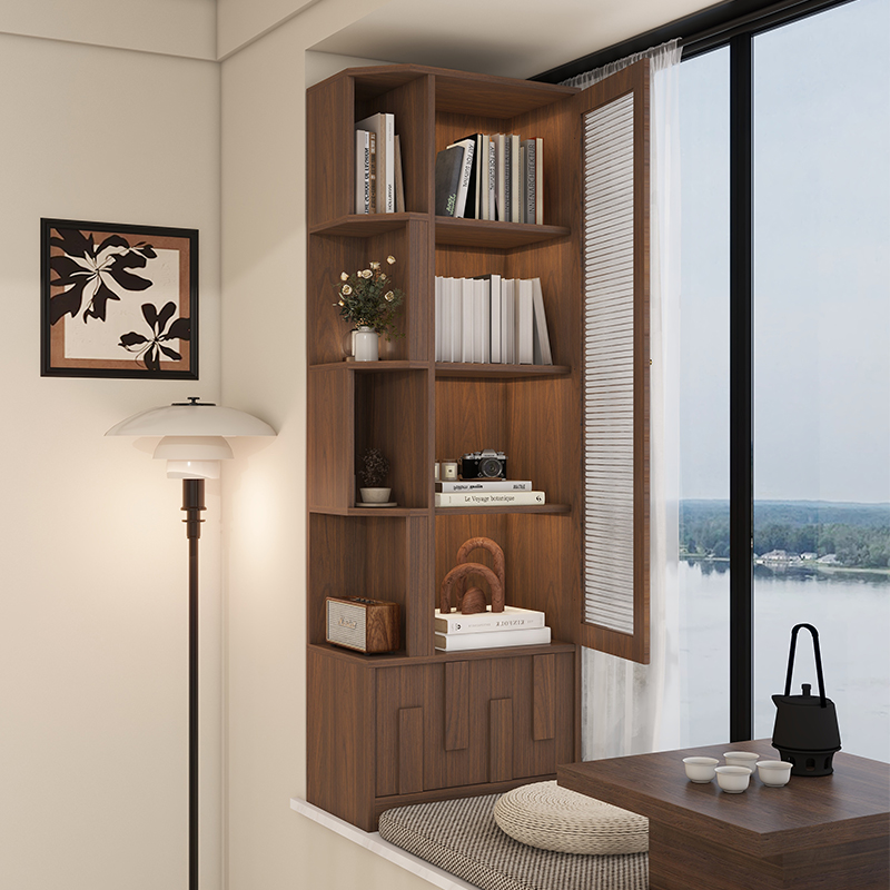 实木中古风飘窗柜储物柜阳台立柜收纳置物柜卧室家用拐角书柜定制,江苏 徐州