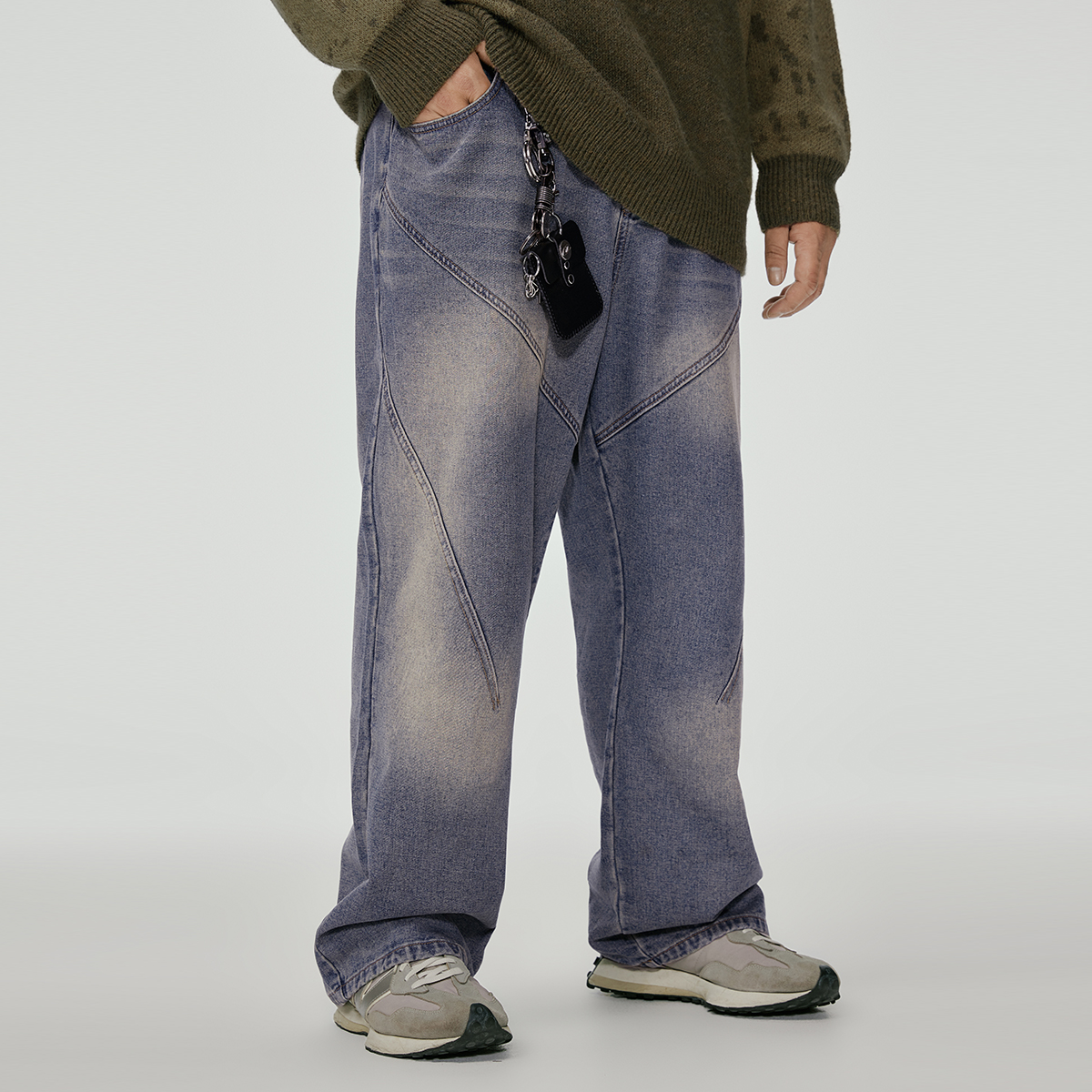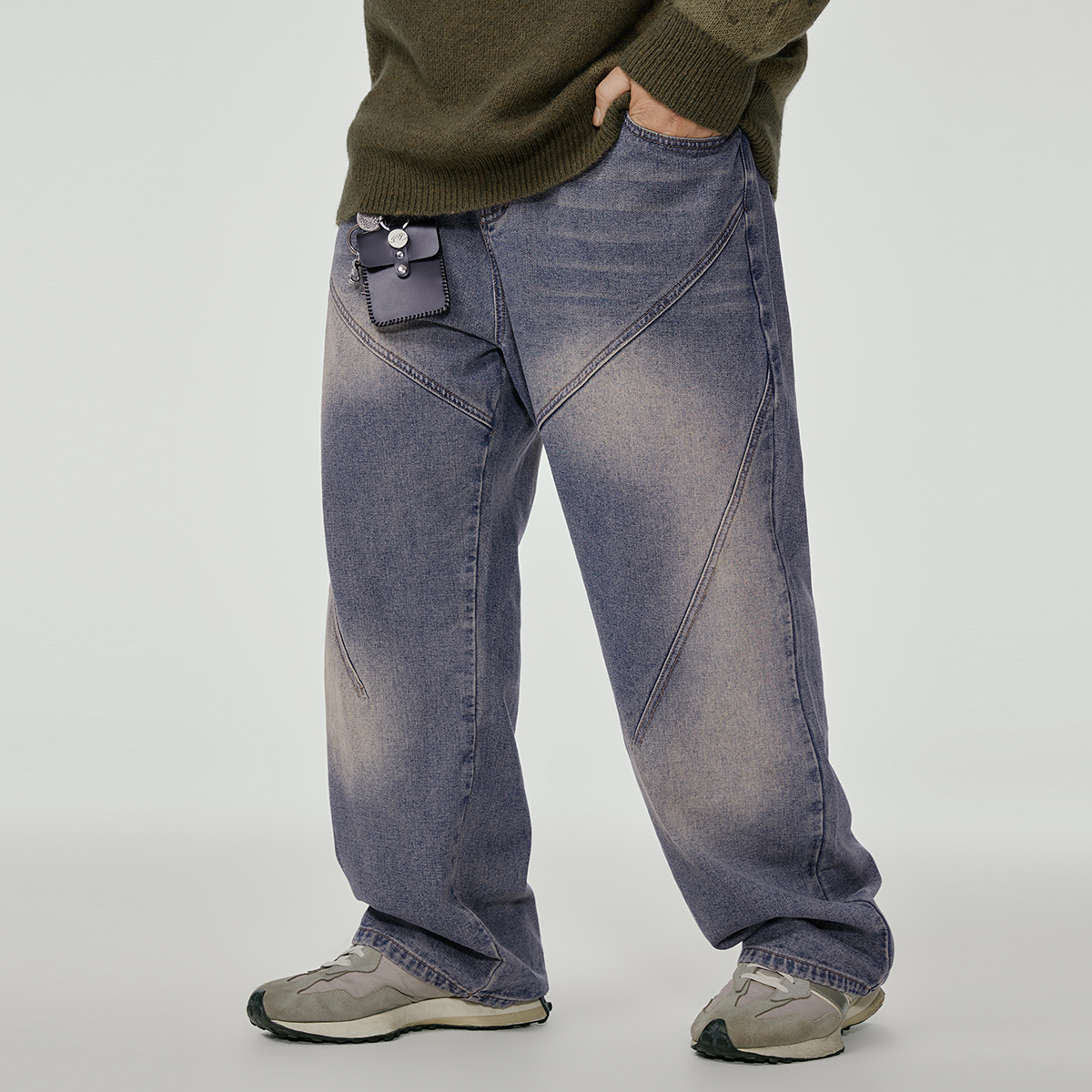 NMAX大码潮牌男装冬季抓绒保暖牛仔裤喷马骝水洗分割直筒裤,浙江 湖州