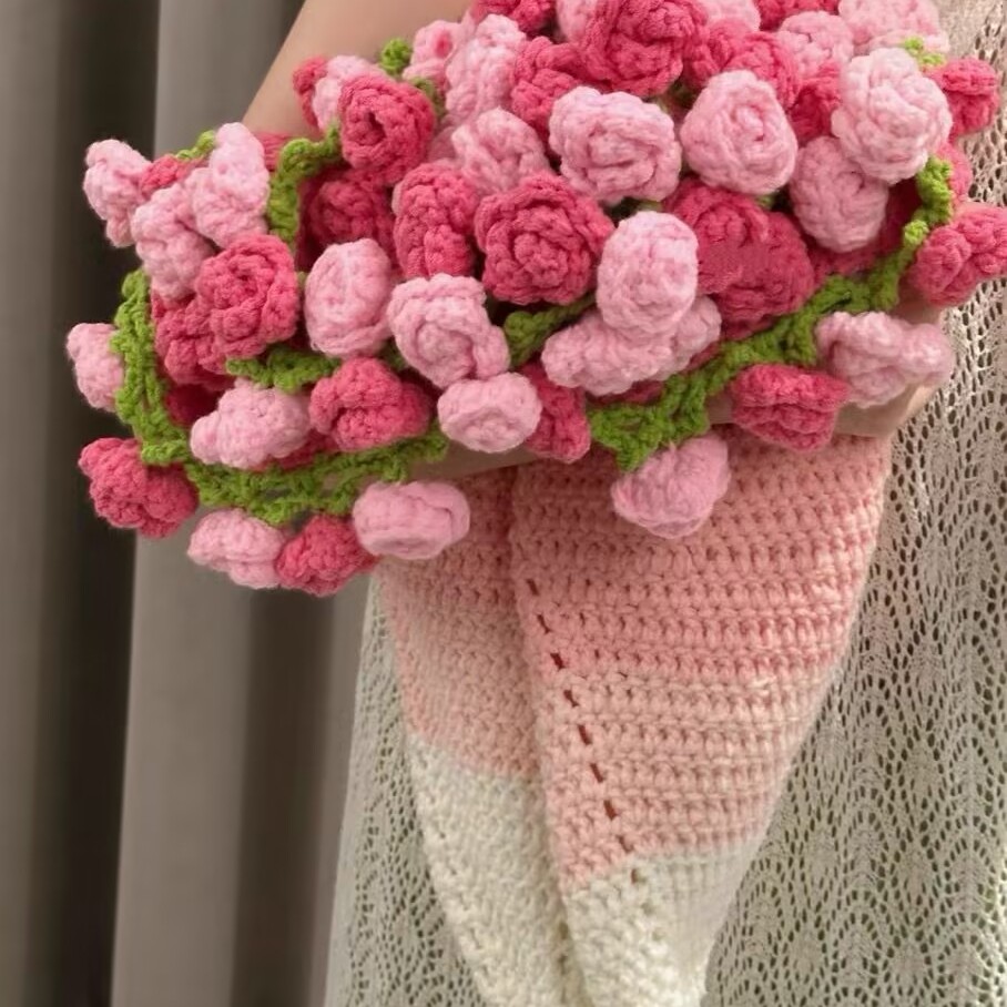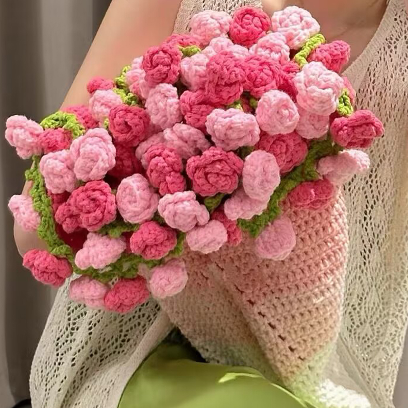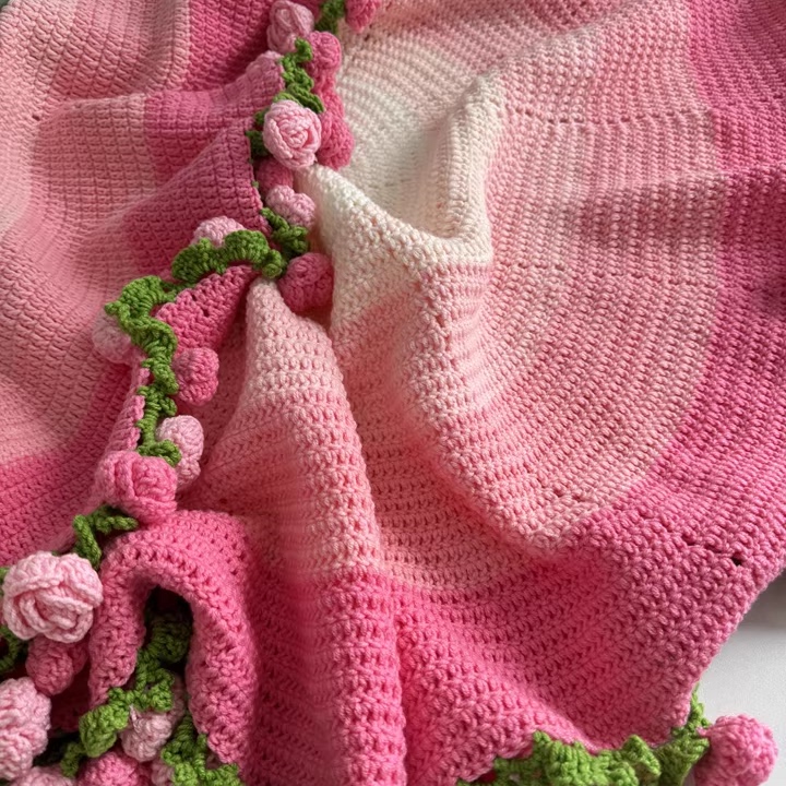优质5股渐变粉毯子手工编织diy花束毛毯材料包毛线玫瑰花毯钩织,浙江 金华