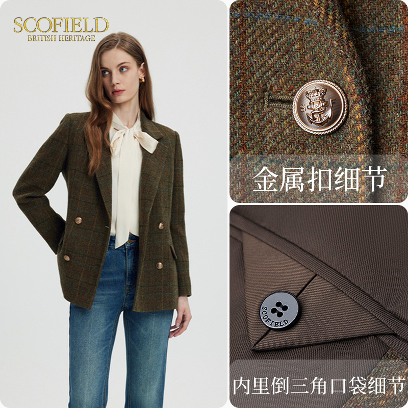 【100%羊毛】Scofield女装英伦风干练翻领西装长袖外套秋季西装,上海
