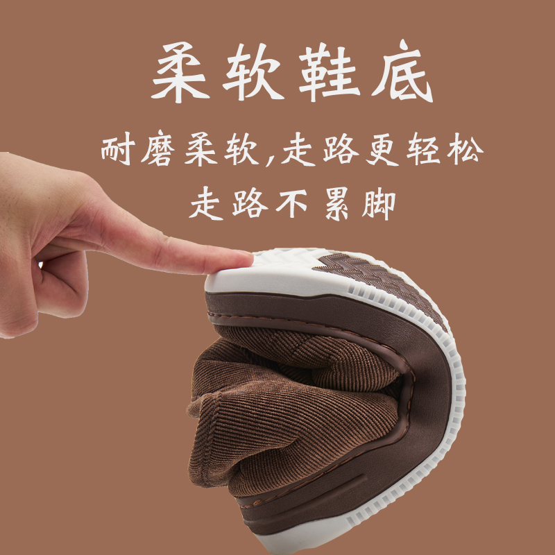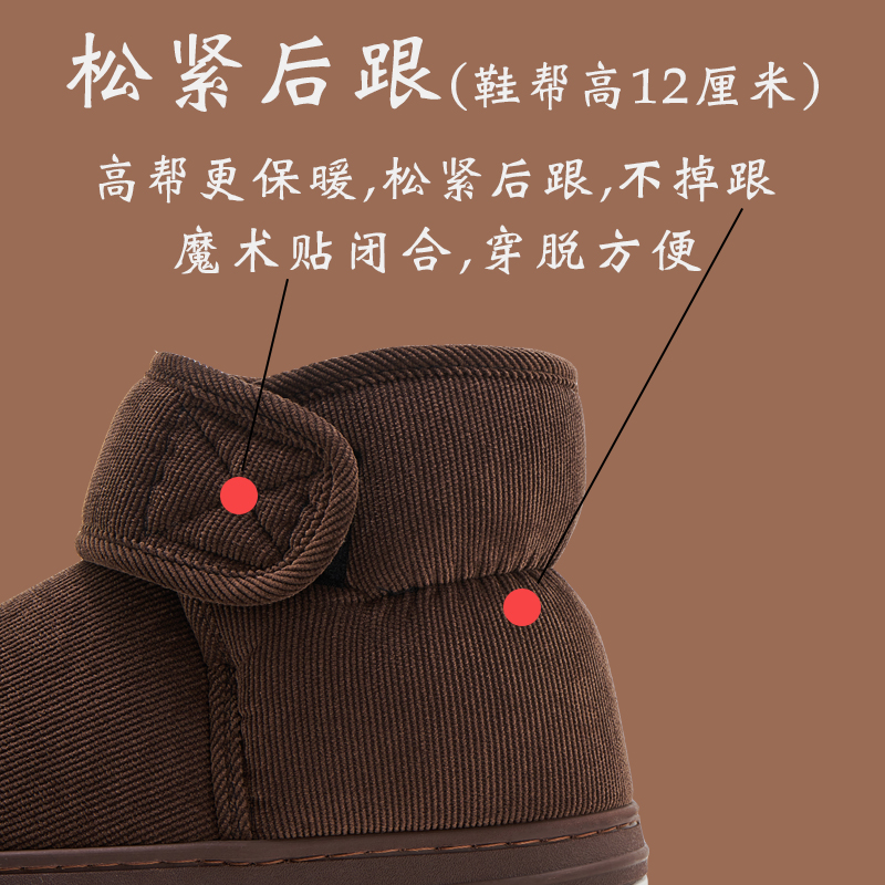 高帮包跟棉拖鞋中老年人保暖大码男士居家用厚底防滑毛绒女冬棉鞋,四川 成都