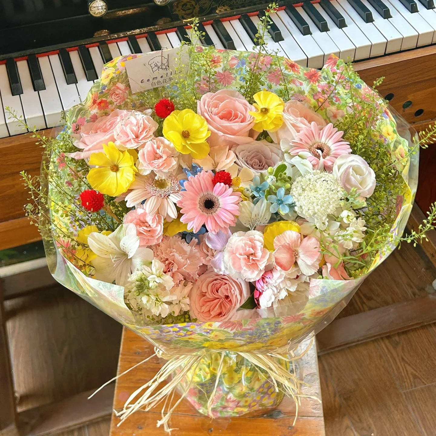 油菜花印花雪梨纸碎花内衬手揉纸春日包装鲜花束手工diy花艺材料,浙江 金华
