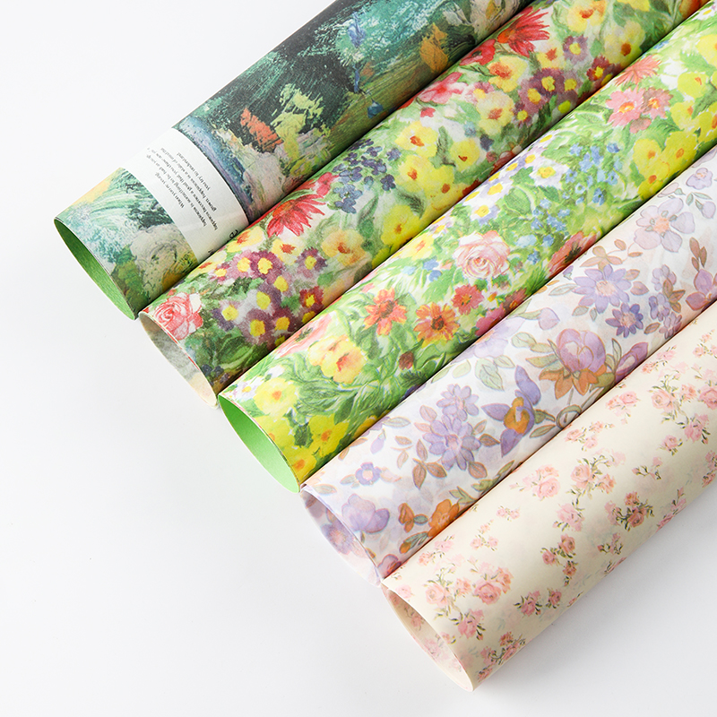 油菜花印花雪梨纸碎花内衬手揉纸春日包装鲜花束手工diy花艺材料