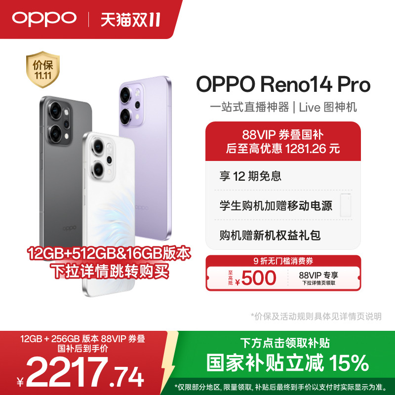 【政府补贴至高500元】OPPO Reno14 Pro 直播神器手机oppo官方旗舰店