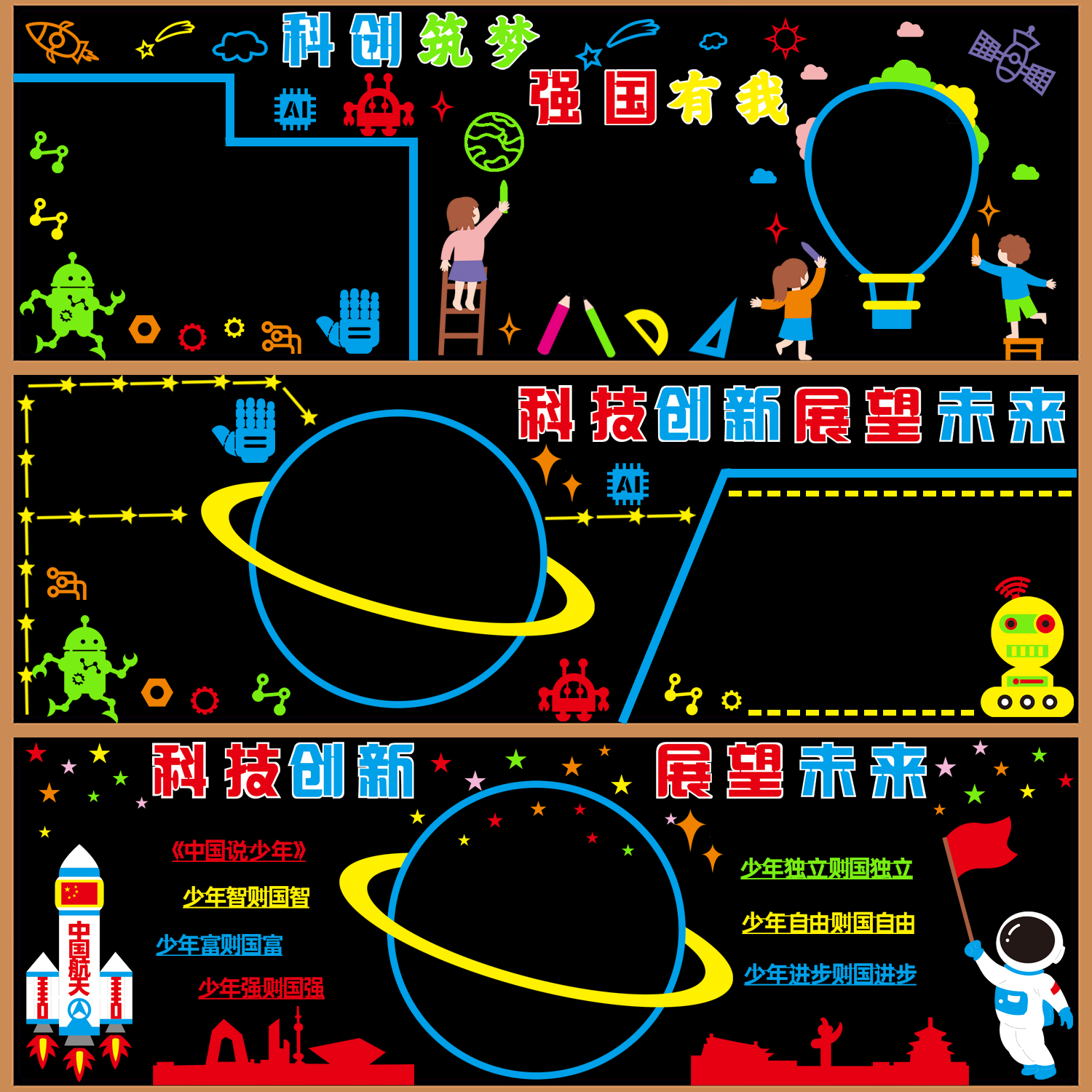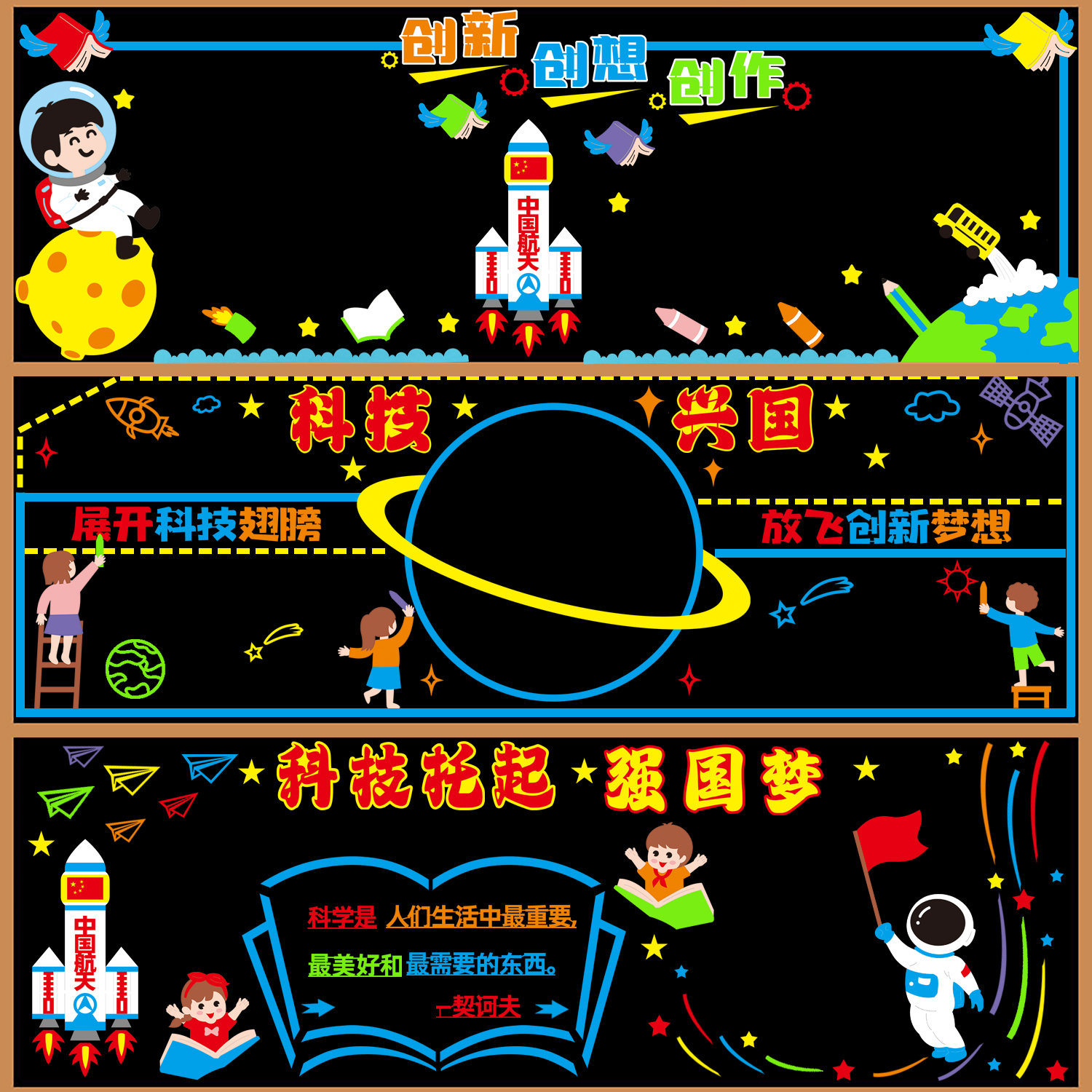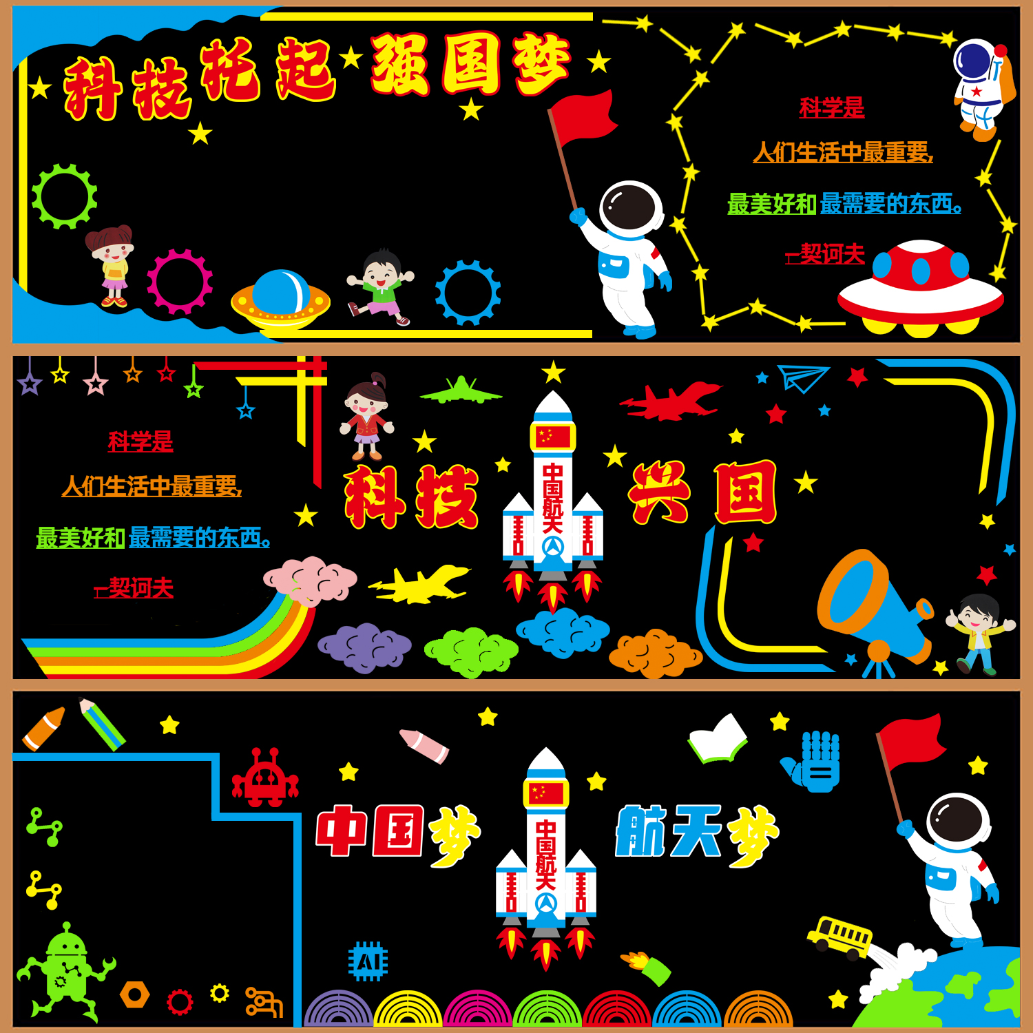 科技创新黑板报装饰墙贴中小学教室班级文化墙布置托起强国梦材料