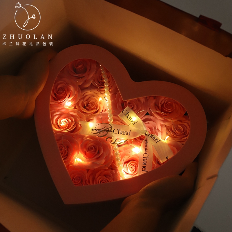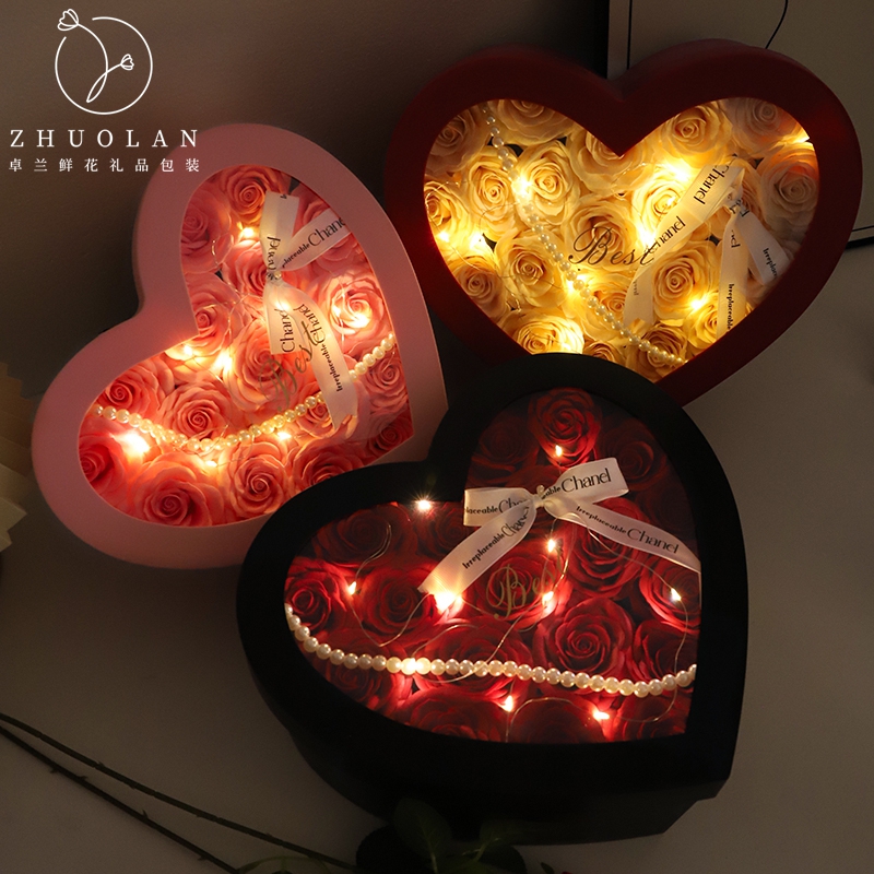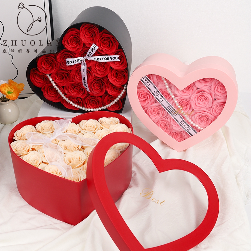 卓兰七夕情人节玫瑰插花爱心礼盒花束包花空盒鲜花礼品盒花店材料