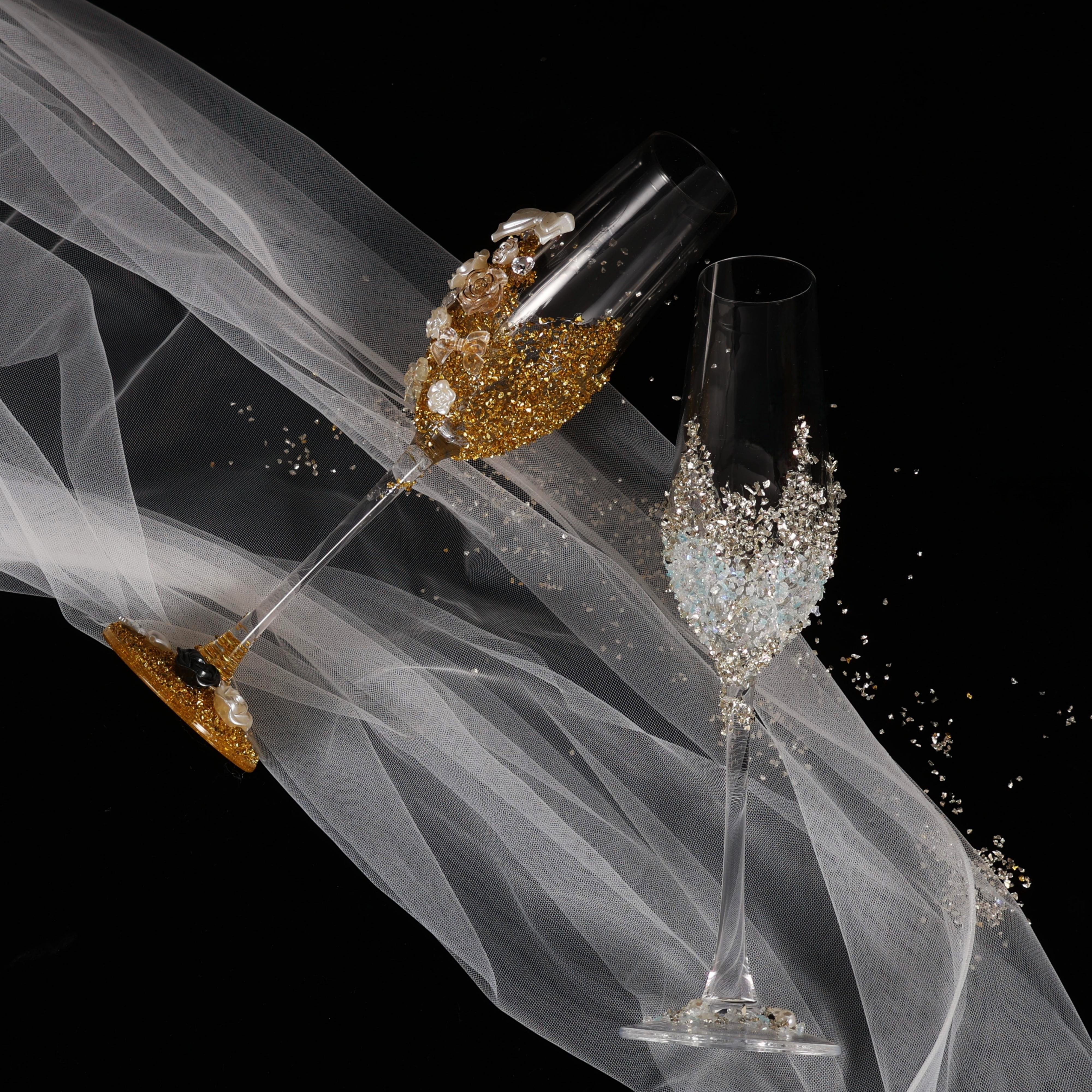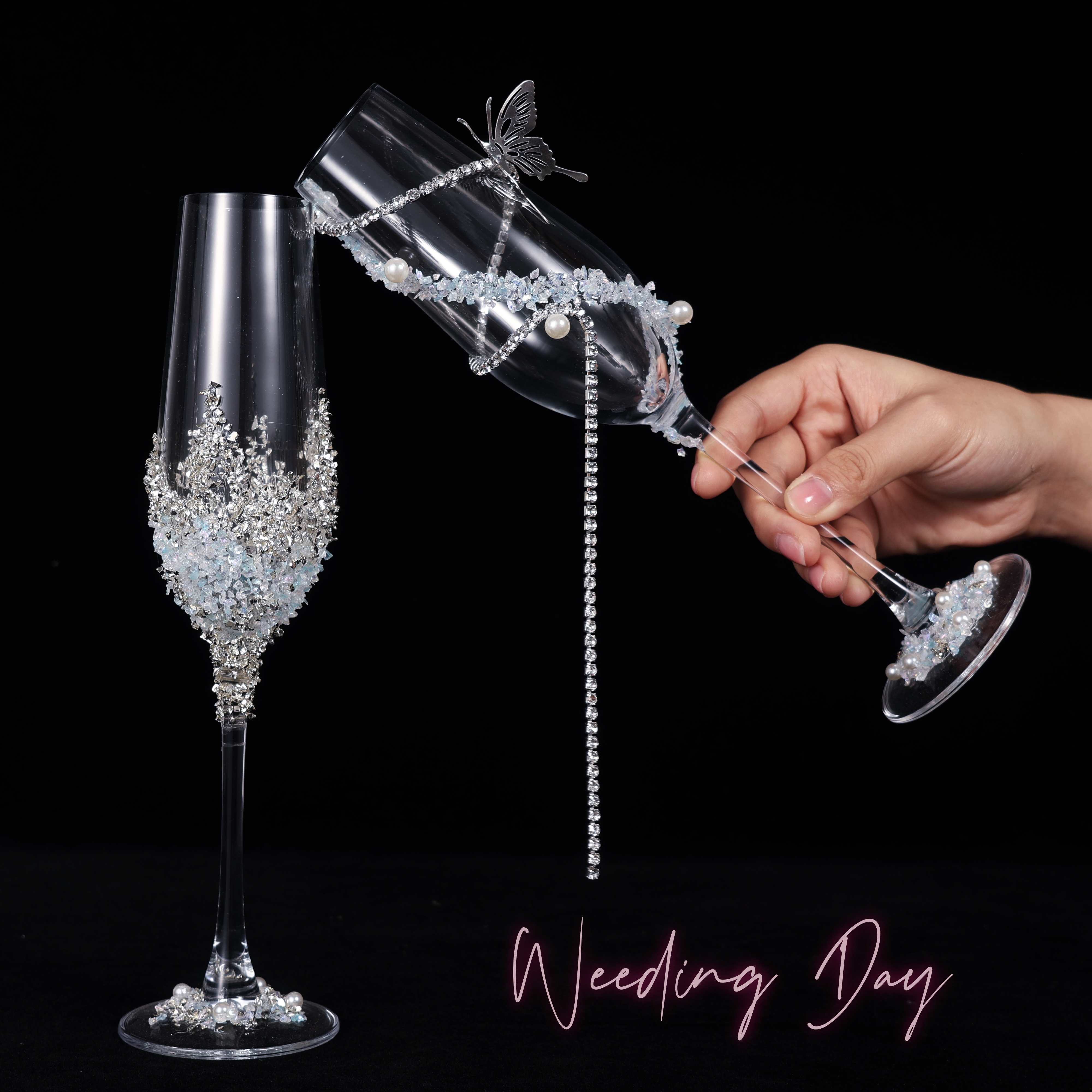 新人结婚一对高脚杯敬酒杯香槟杯手工自制碎钻diy材料包手工礼物,安徽 阜阳