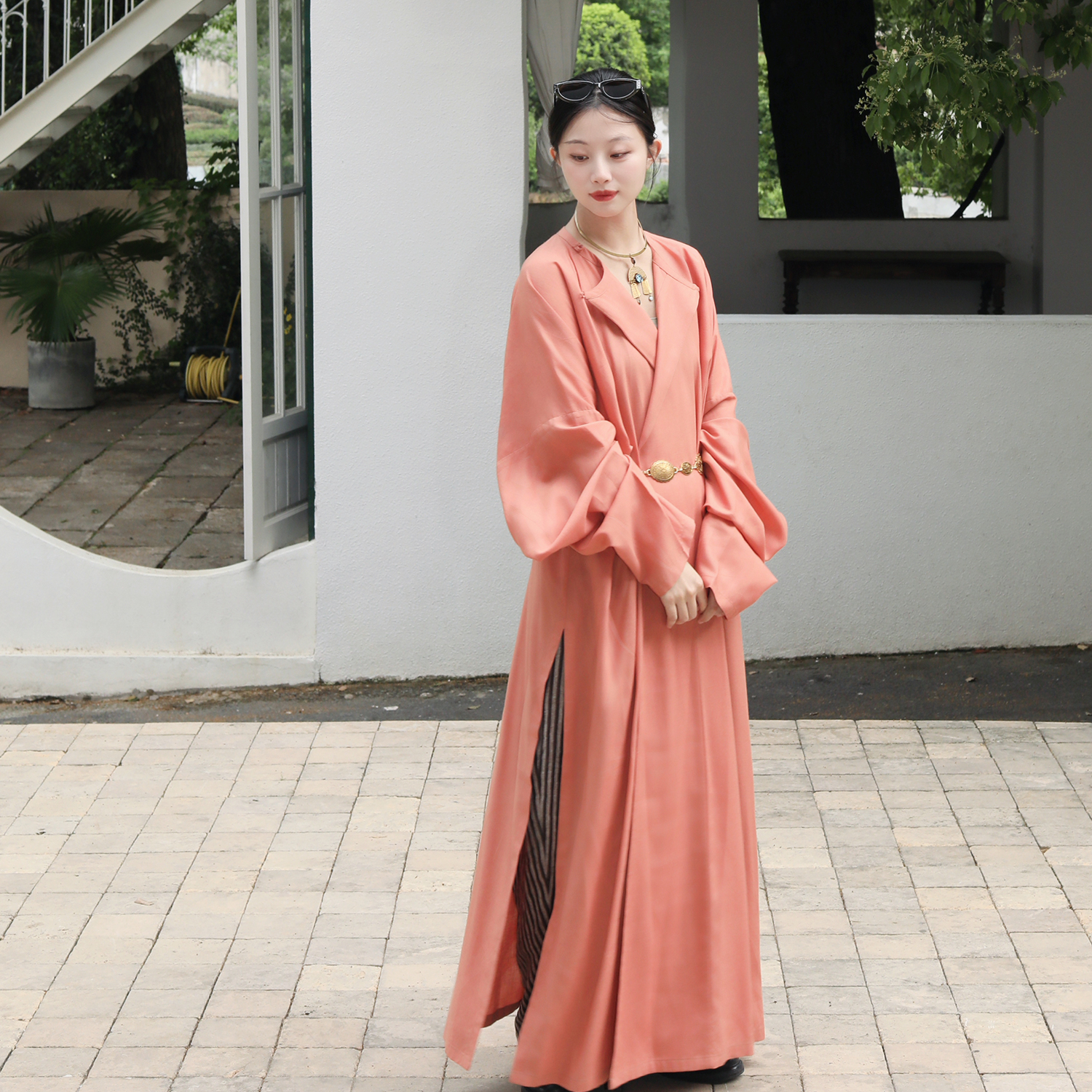谜阿凰【众乐柚唐制圆领袍】日常汉服连衣裙长款日常天丝夏季女