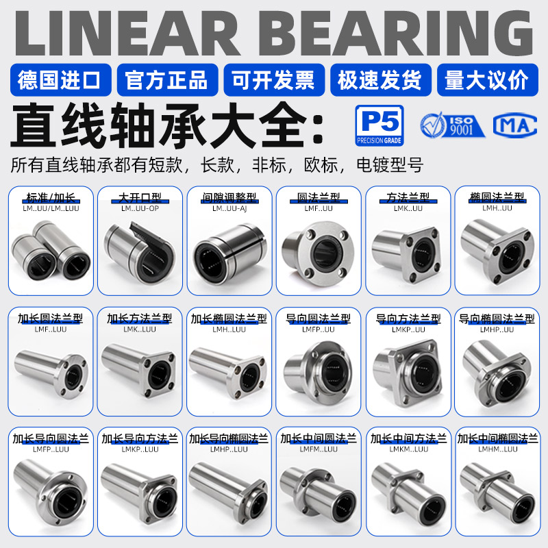进口双切边法兰直线轴承滚珠滑动LMH6 8 10 12 13 16 25 30 40UU,河北 邢台