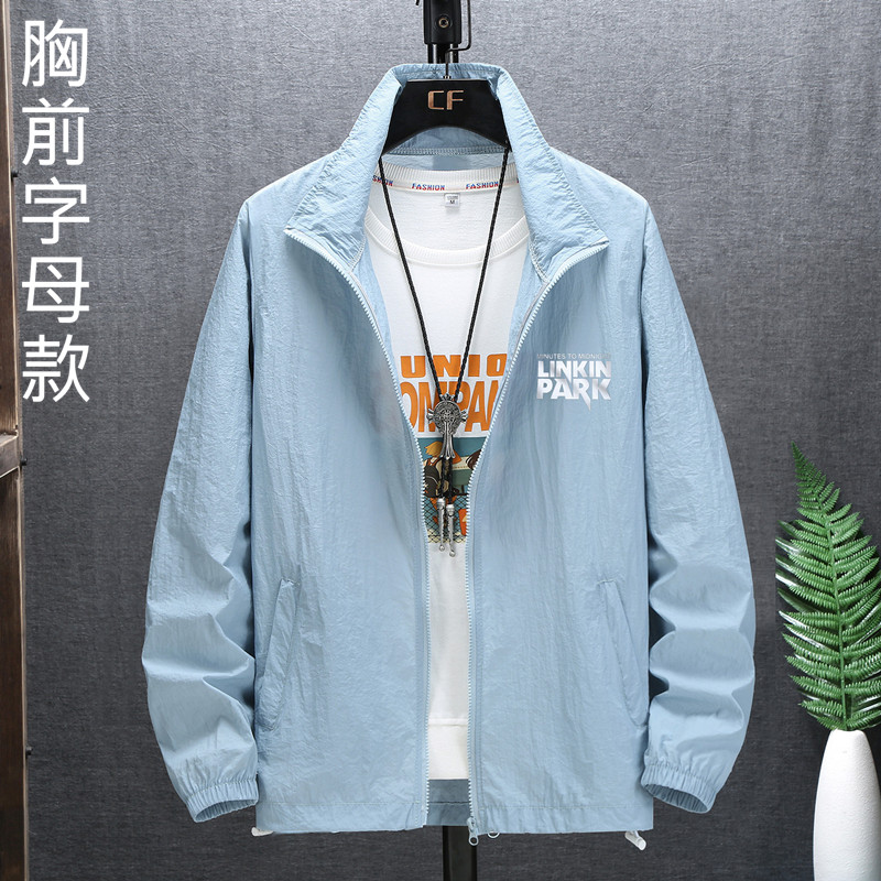 夏季防晒服男钓鱼皮肤衣超薄款防嗮衣透气无帽立领外套加肥加大码,河北 沧州