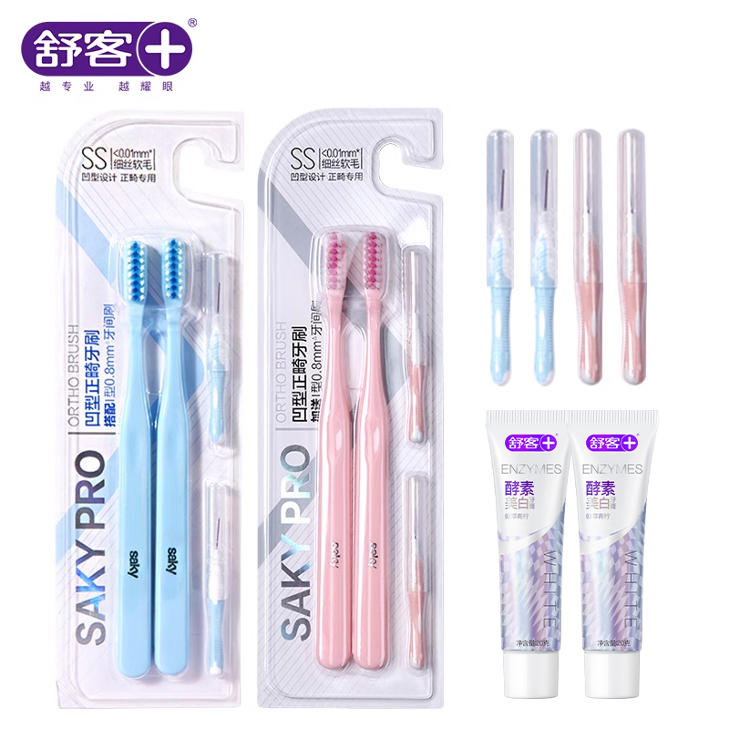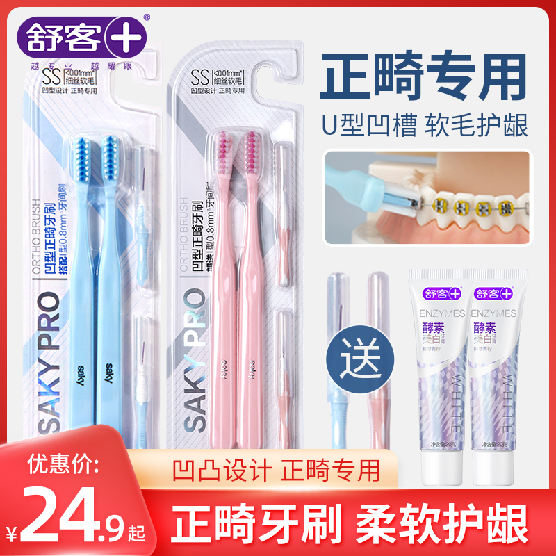 舒客正畸牙刷矫正牙齿专用便携套装凹槽U型箍软毛小头牙缝刷,山东 菏泽