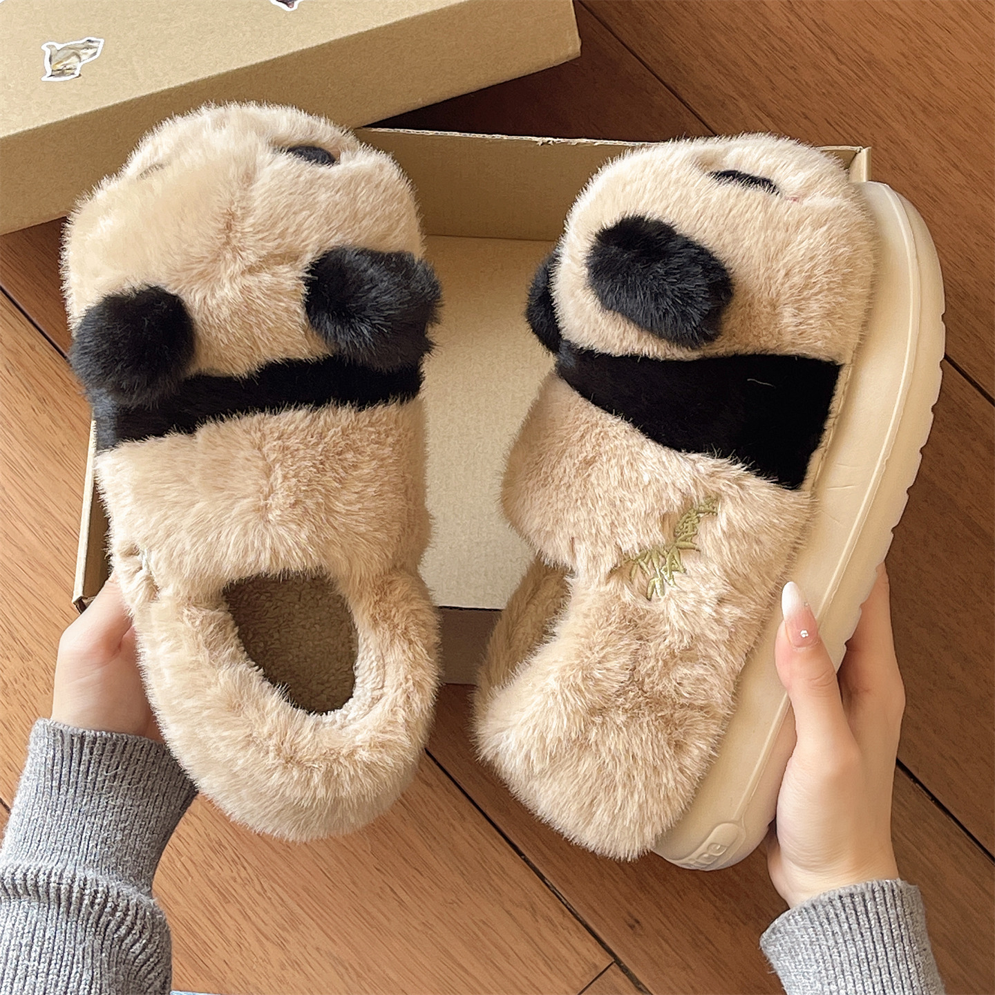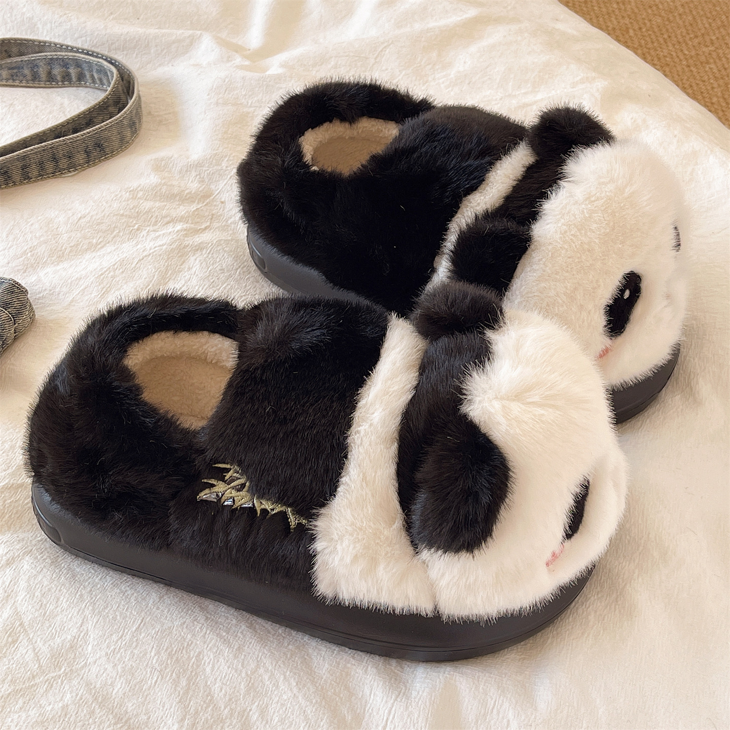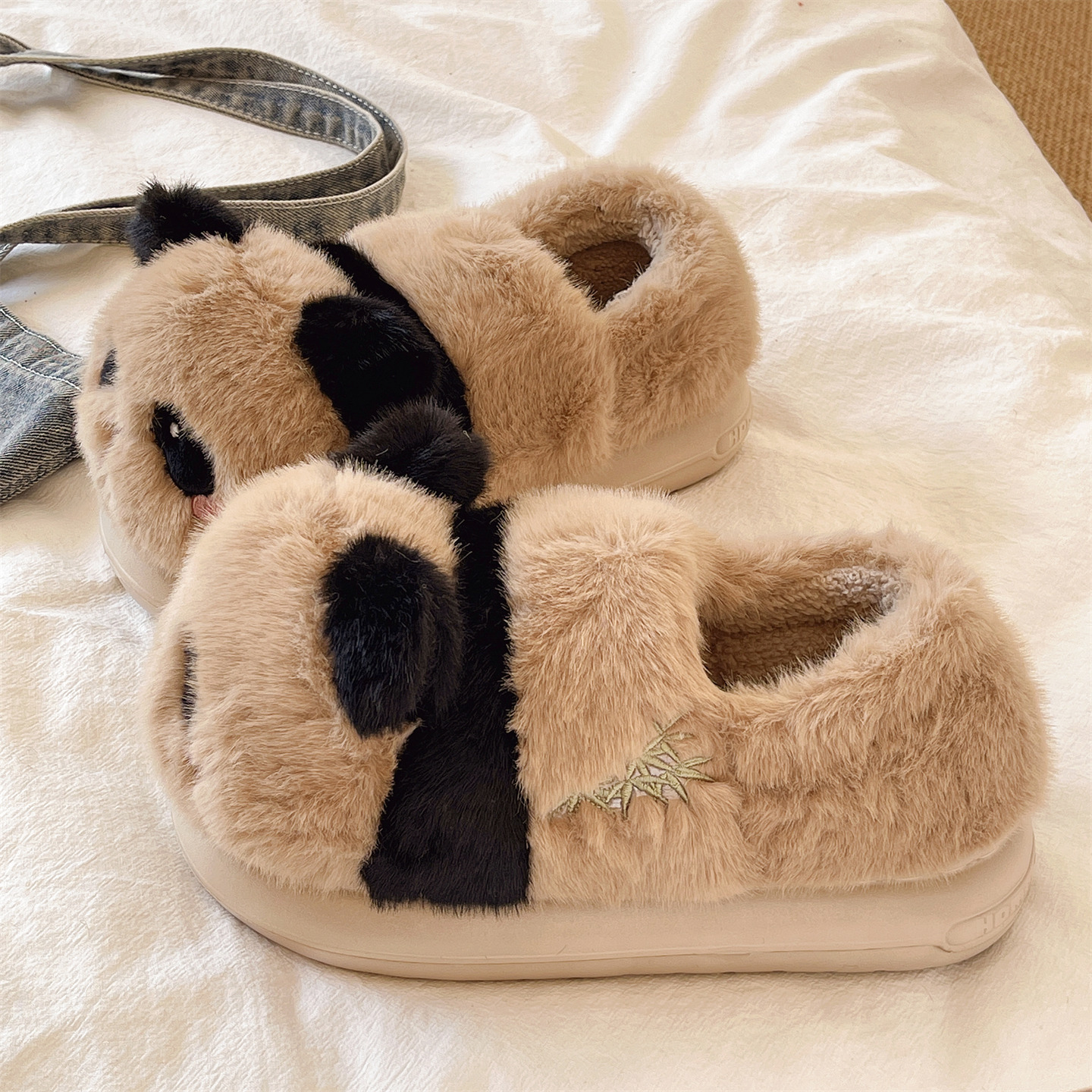 软底月子棉鞋女冬季包跟毛绒保暖居家室内防滑可爱卡通熊猫棉拖鞋,浙江 宁波