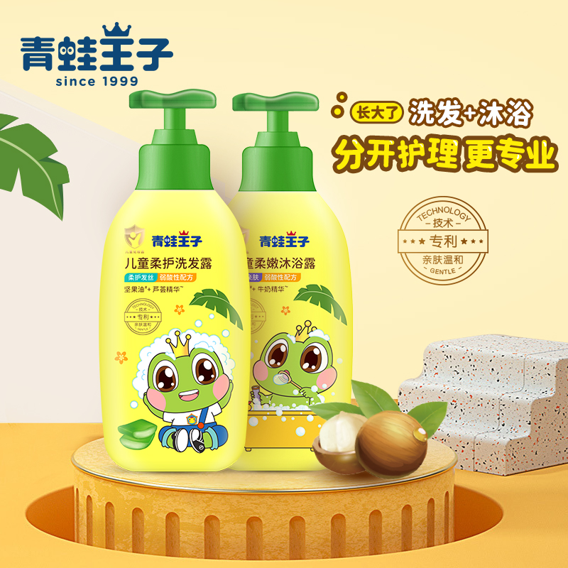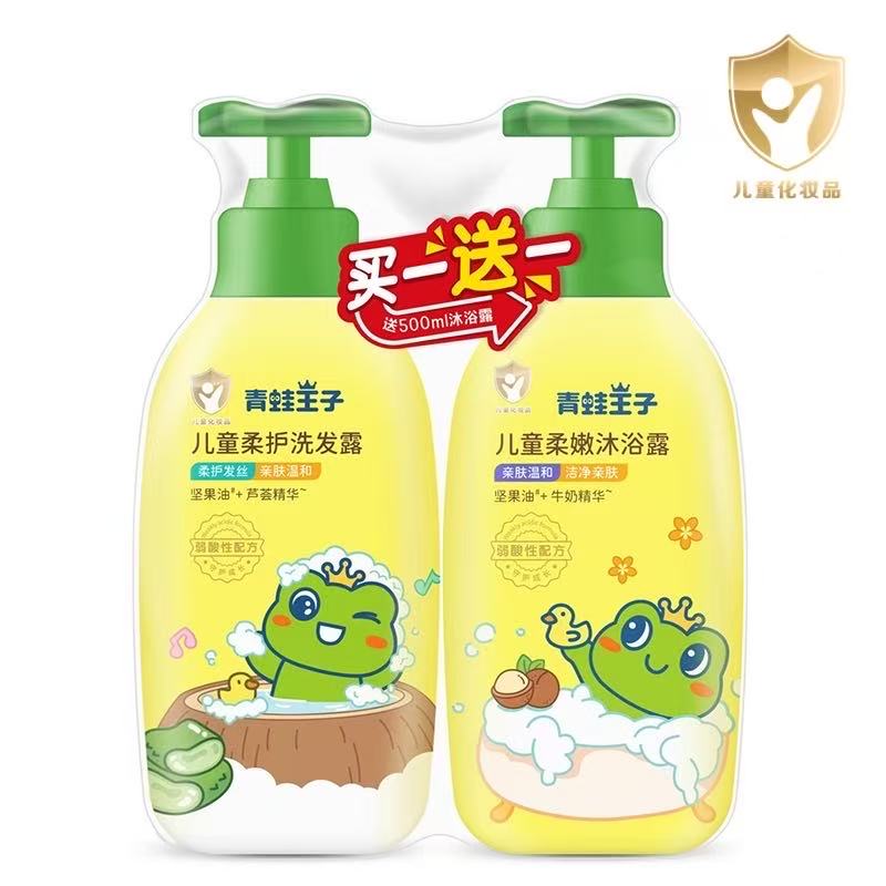 500ml*2瓶青蛙王子儿童洗沐套装添壳多糖芦荟牛奶精华澳洲坚果油