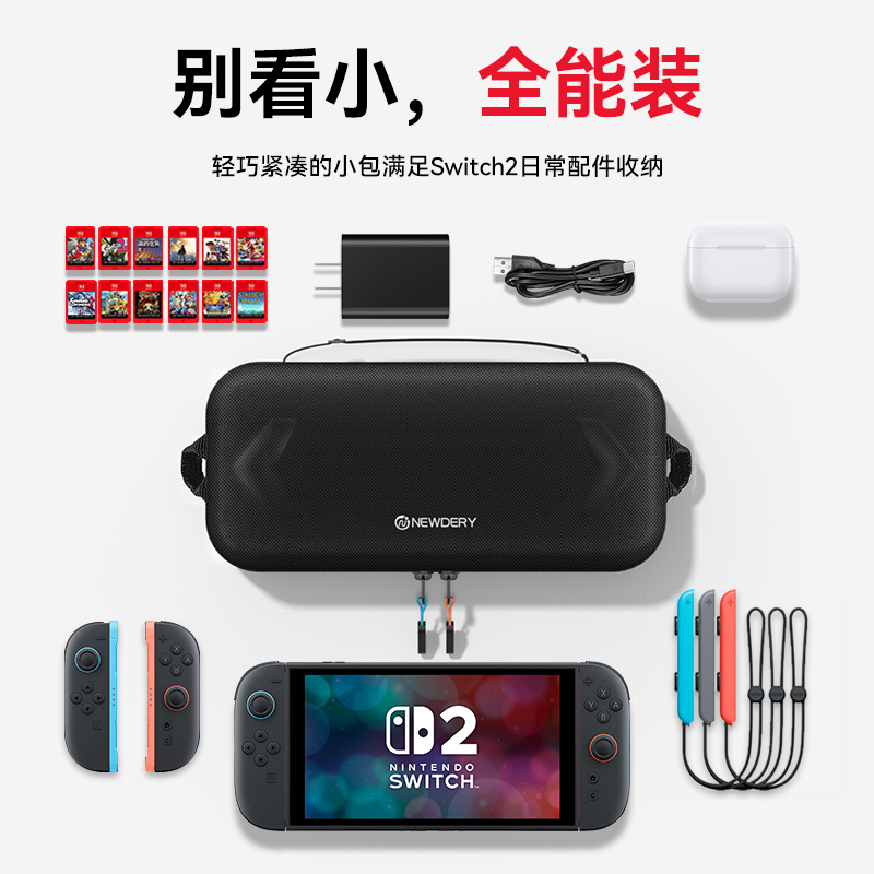 新得利任天堂Switch2收纳包NS2掌机保护套大容量便携保护壳二代游戏机通勤包手柄握把出行包卡带盒配件