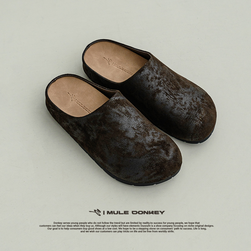 多嘴驴Donkey粽色反绒勃肯鞋女秋季外穿包头拖休闲复古软底半拖鞋,浙江 温州