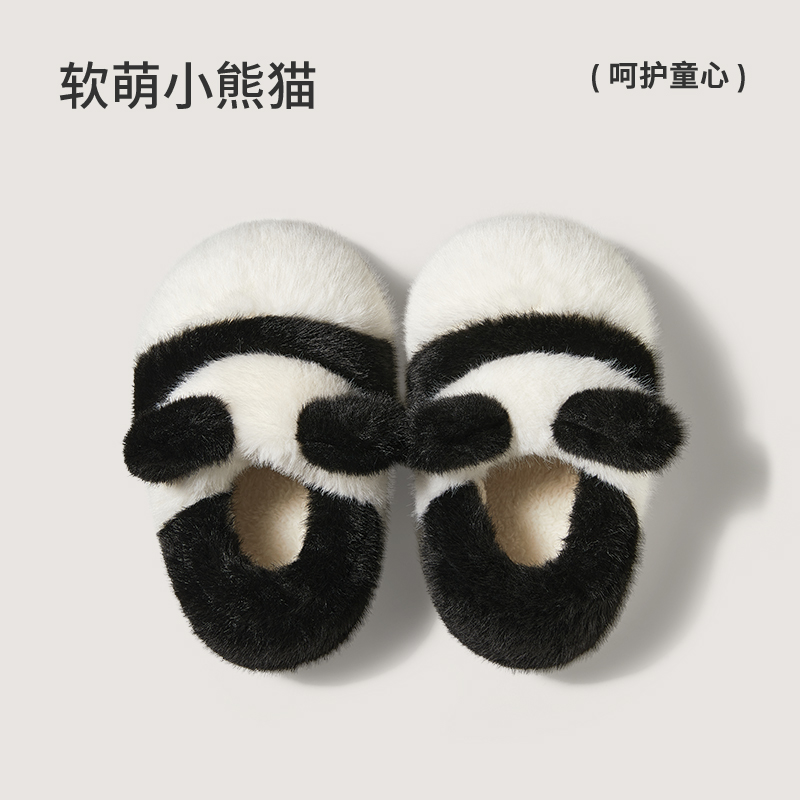 朴西小熊猫亲子棉鞋女2025冬居家室内防滑舒适保暖家用儿童棉拖鞋