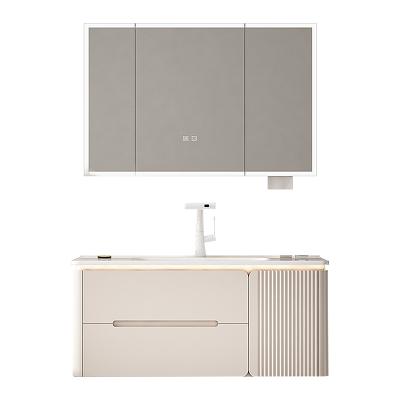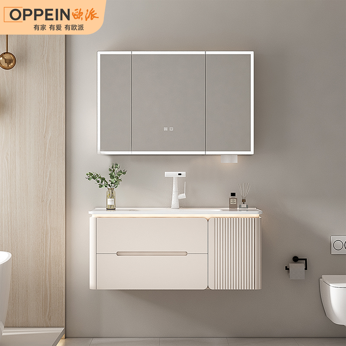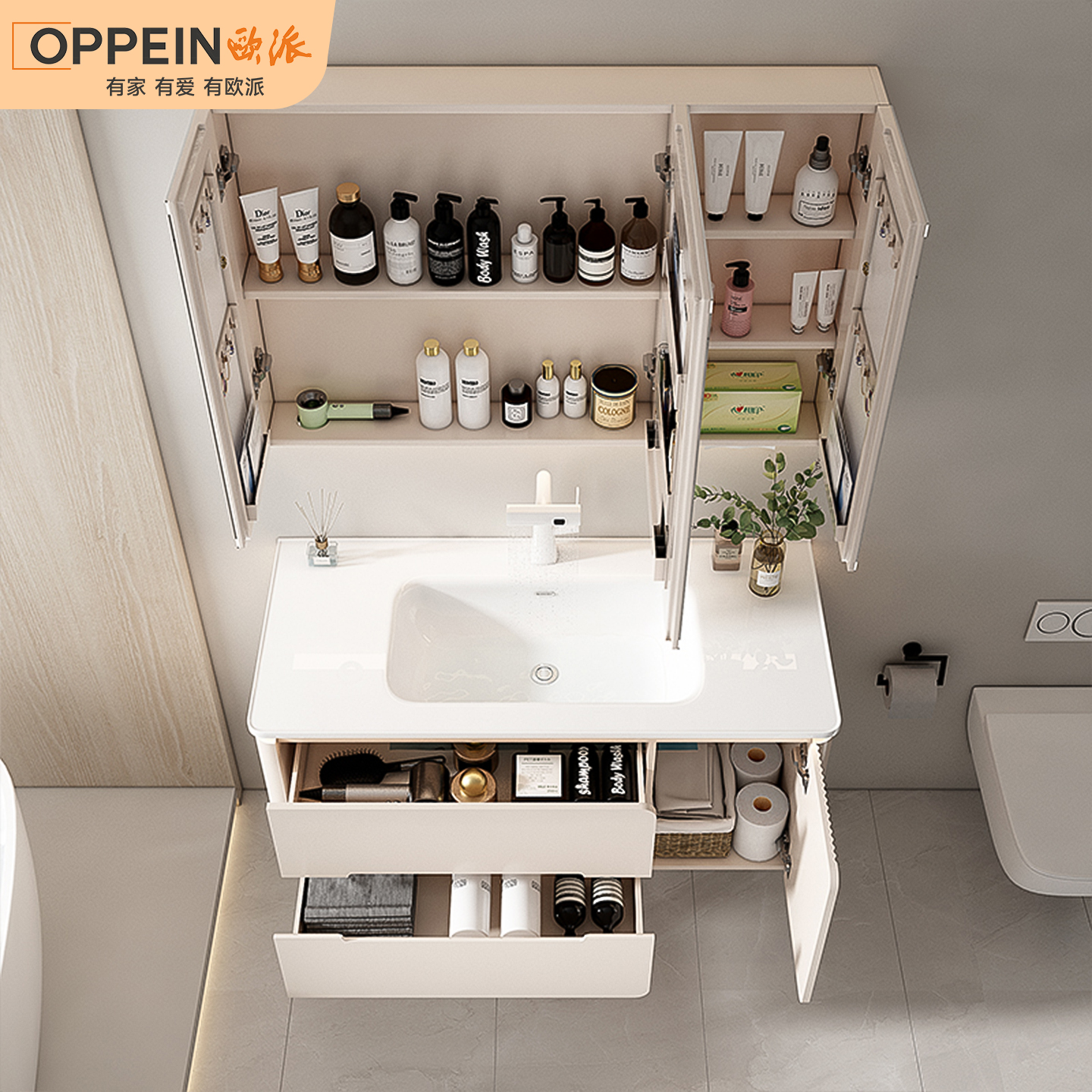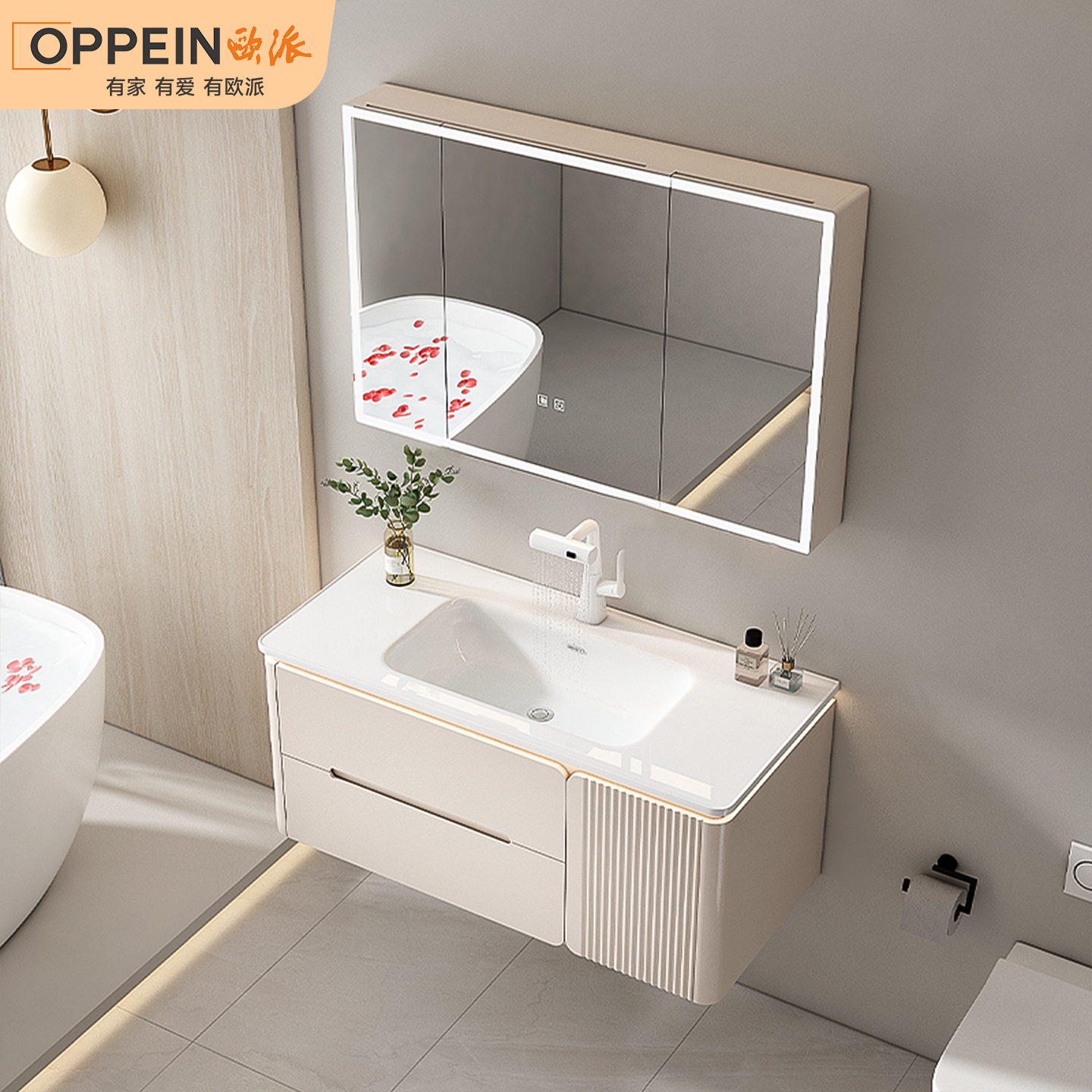 欧派圆弧陶瓷一体盆浴室柜组合奶油风卫生间洗脸盆柜洗漱台卫浴柜