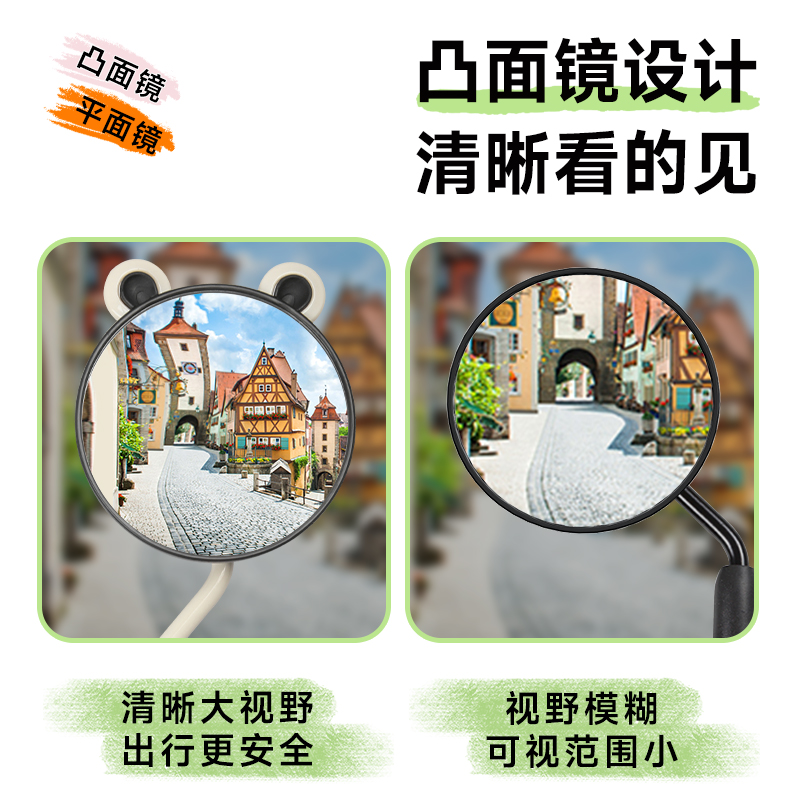 电动车后视镜电瓶车自行车通用反光镜可爱高清视野圆形倒车反光镜