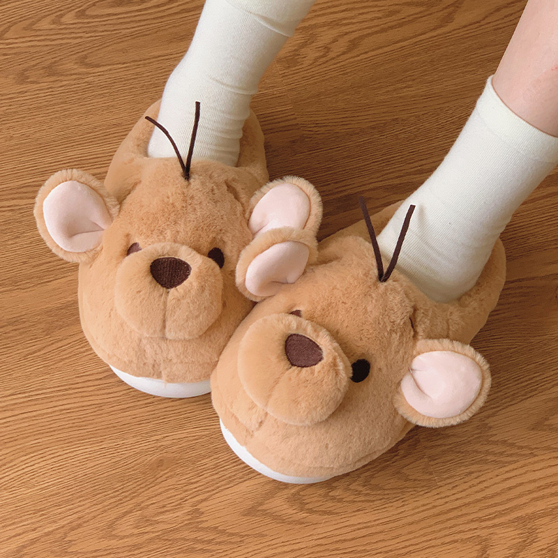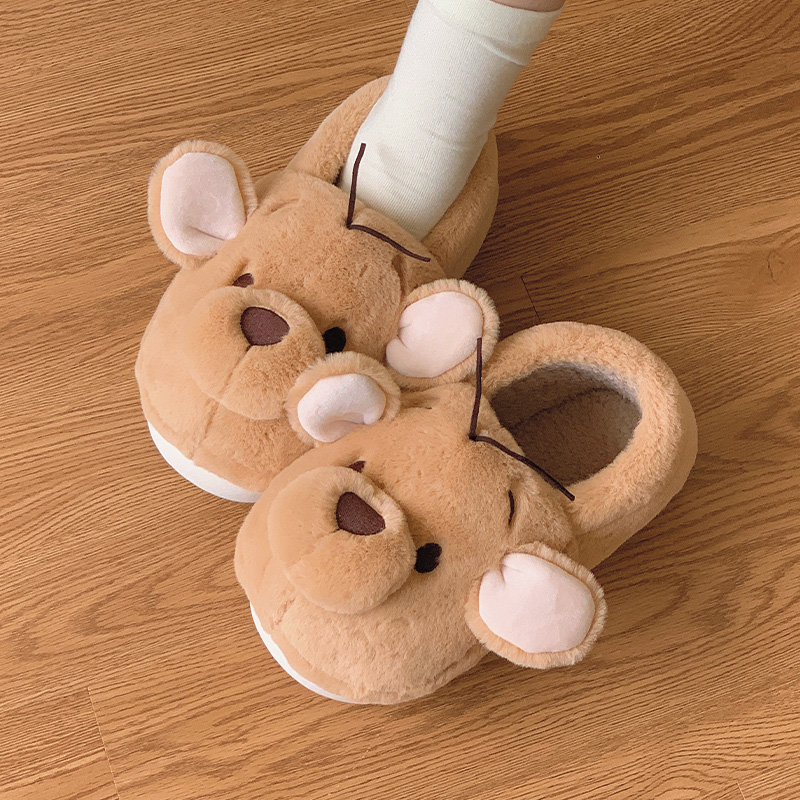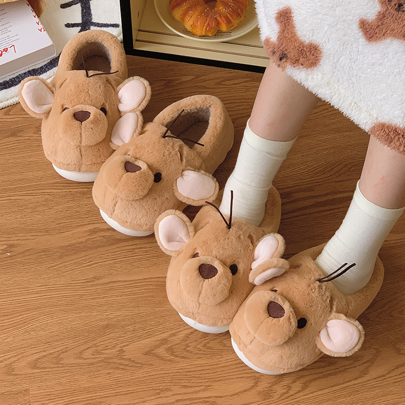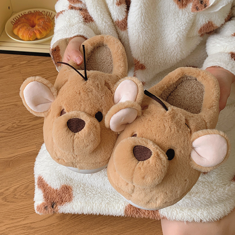 可爱小豆棉拖鞋女秋冬季外穿潮防滑情侣加绒居家包跟保暖棉鞋秋千,上海