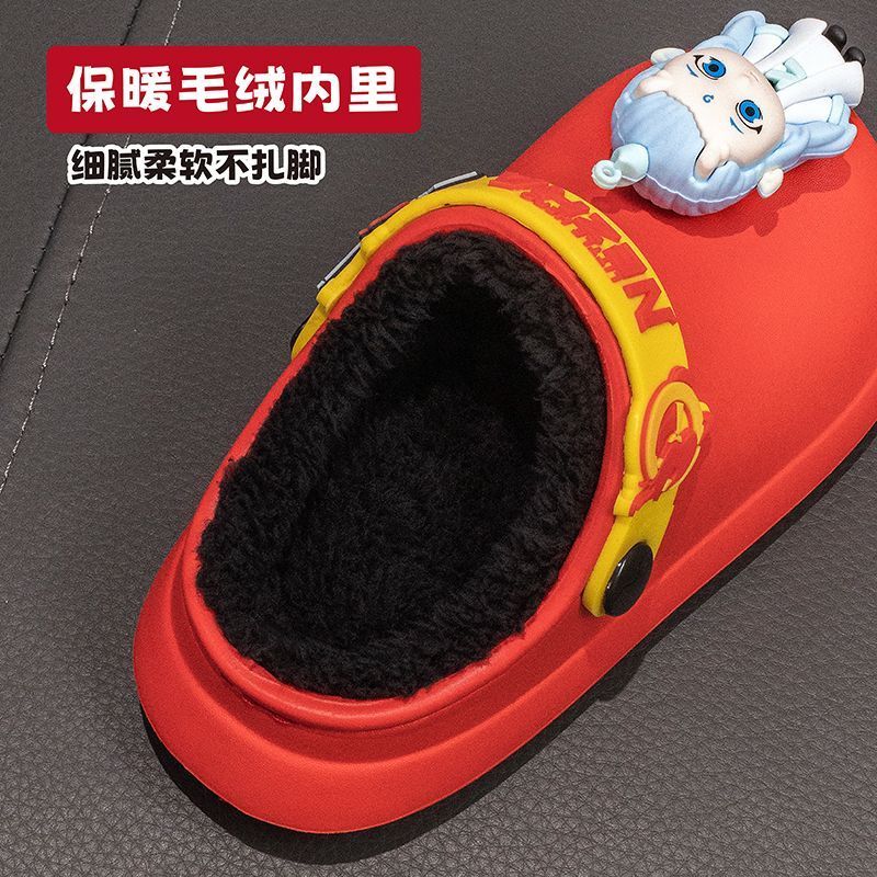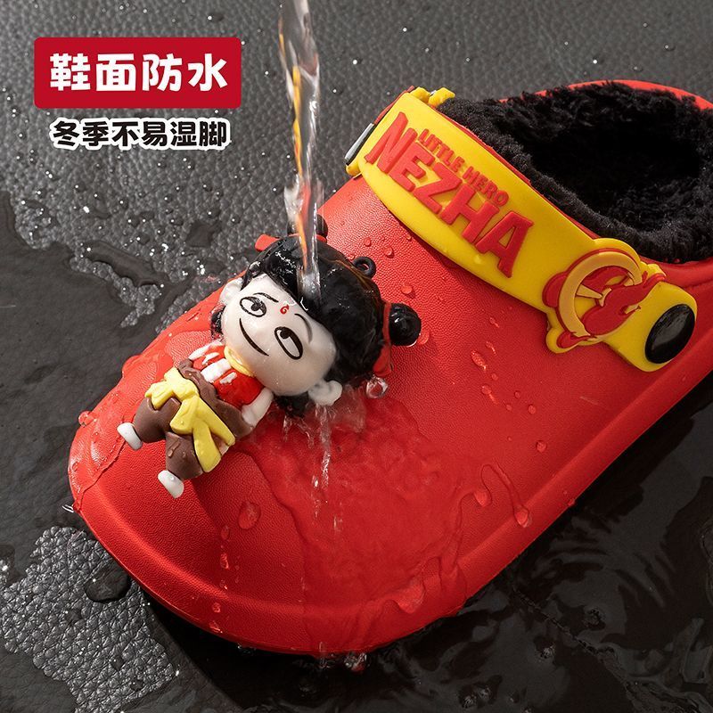 哪吒儿童棉拖鞋防水居家保暖秋冬季新款皮面小童包头加绒室内棉鞋,浙江 金华