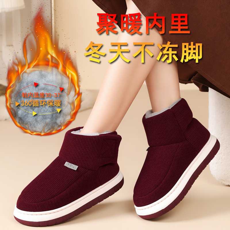 冬季加绒保暖棉鞋男女式情侣款居家室内外穿防滑厚底棉拖鞋高包跟,四川 成都