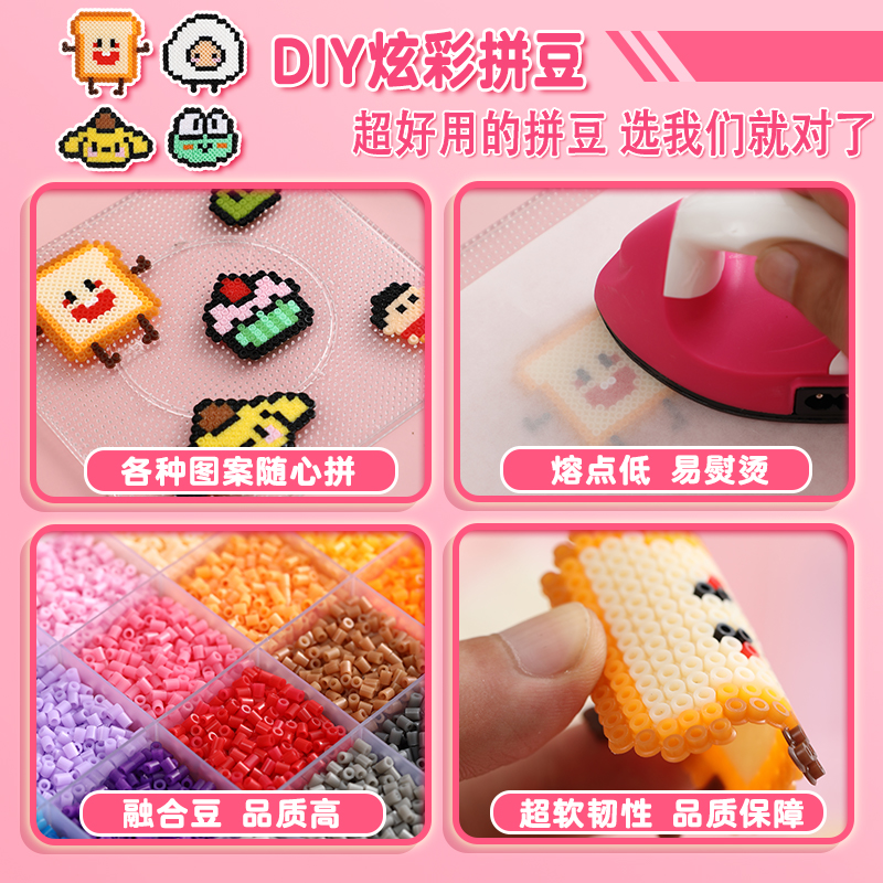 儿童拼豆豆全套配齐手工diy拼豆套装材料包拼图玩具立体融合豆coco同款拼豆补充包工具豆笔熨烫自制挂件礼物
